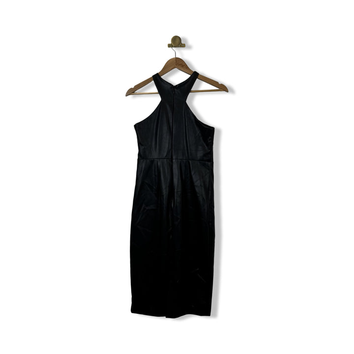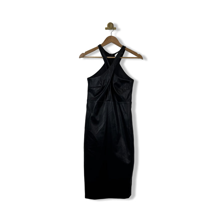 - Constructed from synthetic material, this mini dress features a halter neckline with a crisscross design, giving it a modern and stylish appeal.
