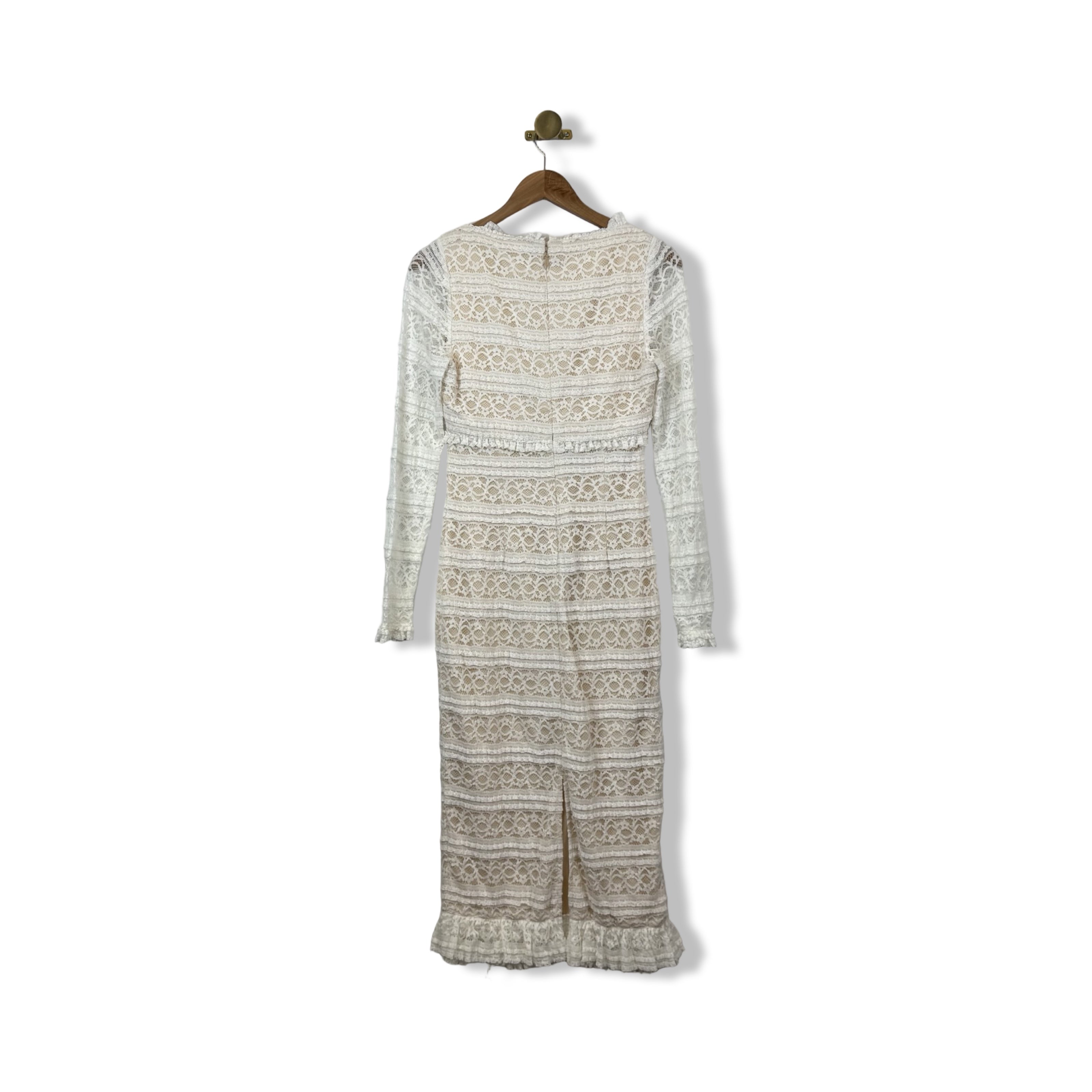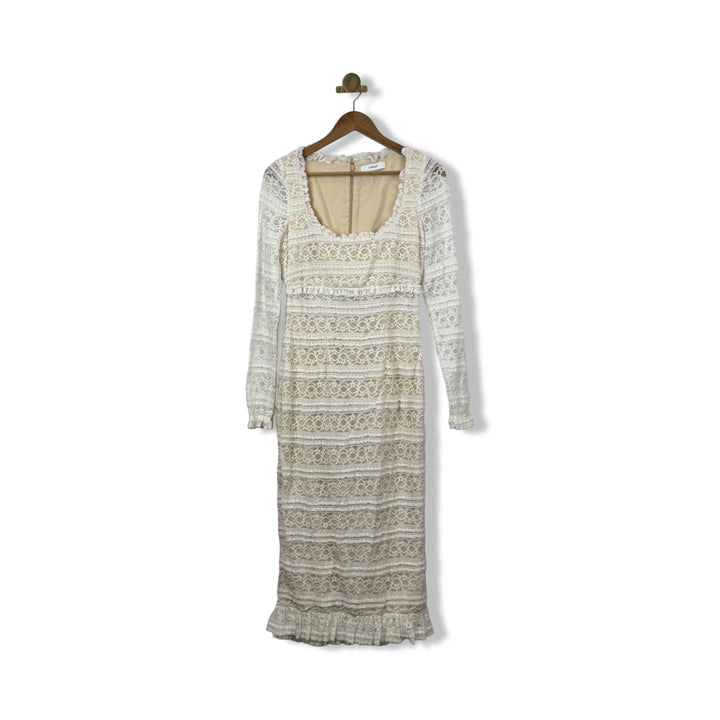 - Feel effortlessly romantic in the Lidia Dress. Boasting a fitted midi cut with flounce skirt and square neckline, this delicate dress is the perfect accompaniment to any special occasion. Make heads turn while flaunting your timeless style.