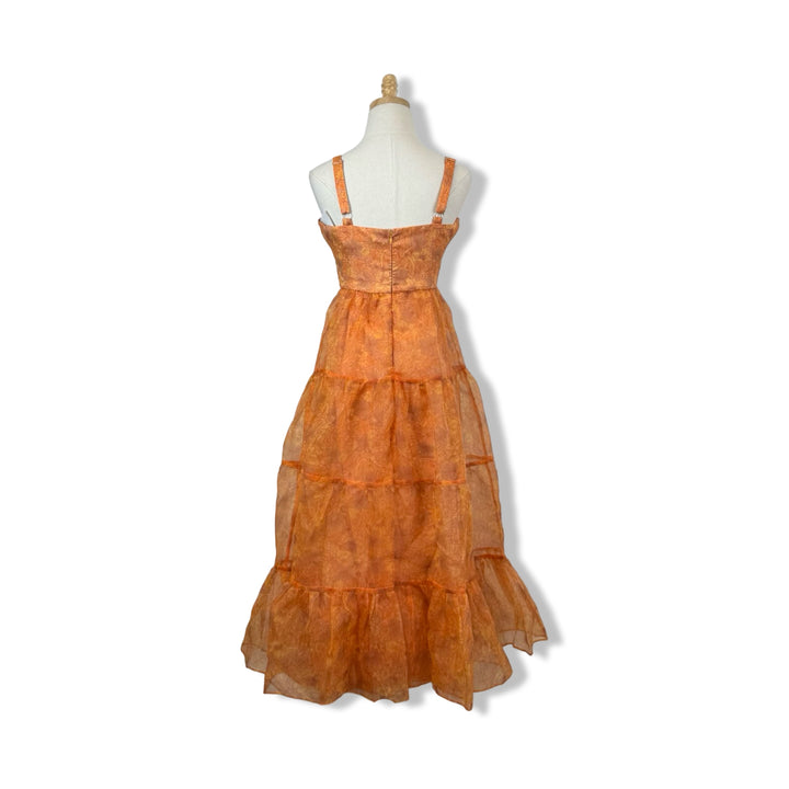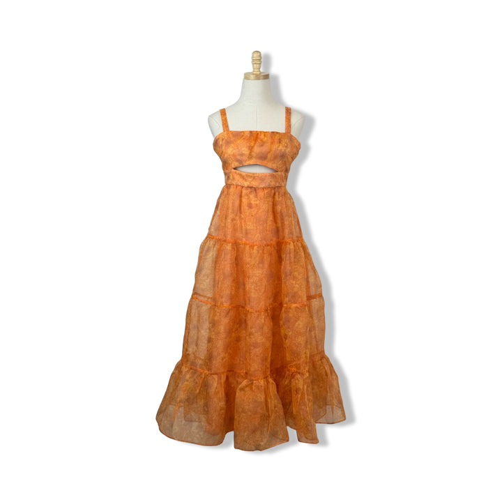 - This midi dress features an adjustable strap and tiered organza fabric, as well as a cutout at the bodice for added detail.