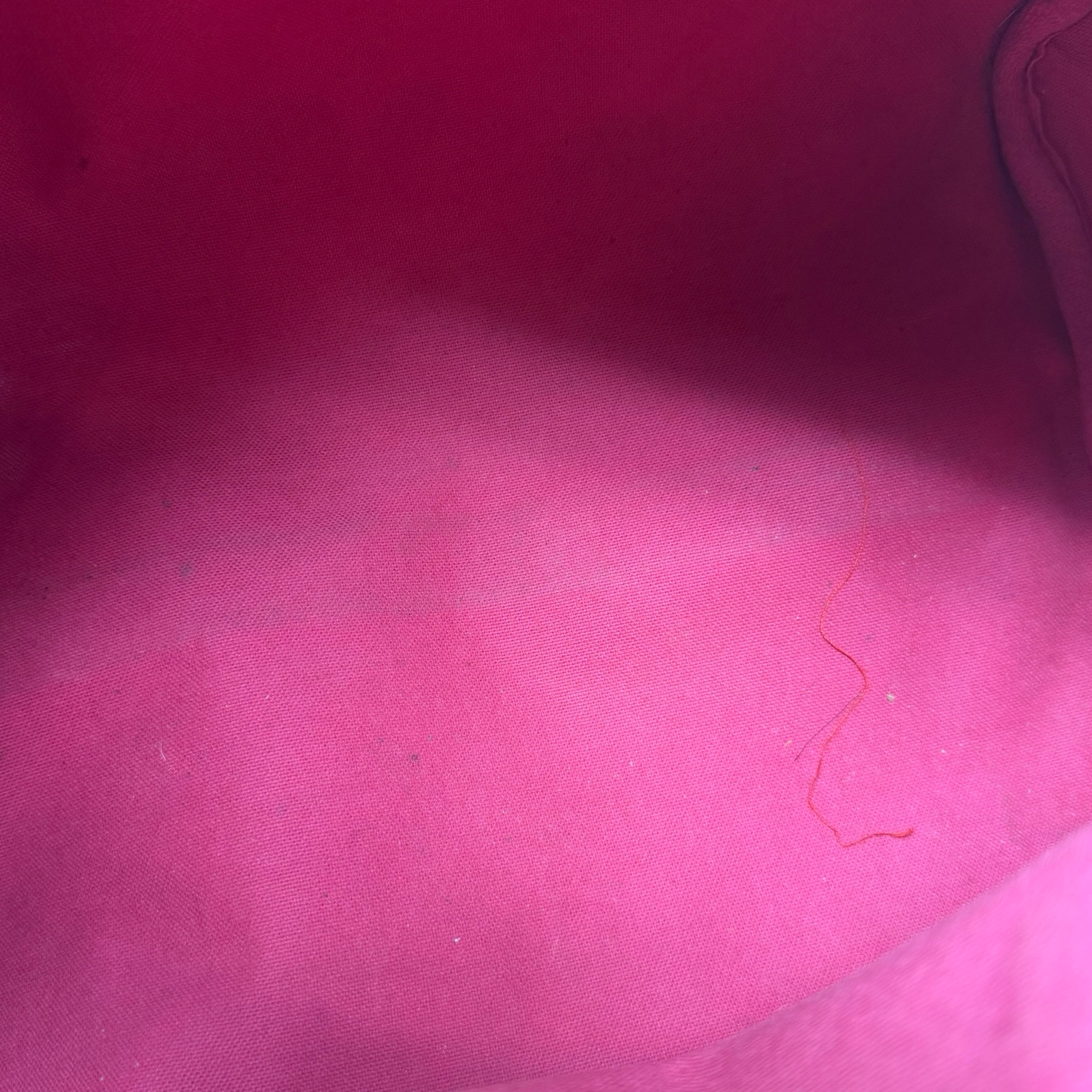 - Monogram bag with applique details, detachable crossbody strap, one main inner compartment, and one smaller inner zip pocket. Designer dust bag included. Signs of wear (pictured)