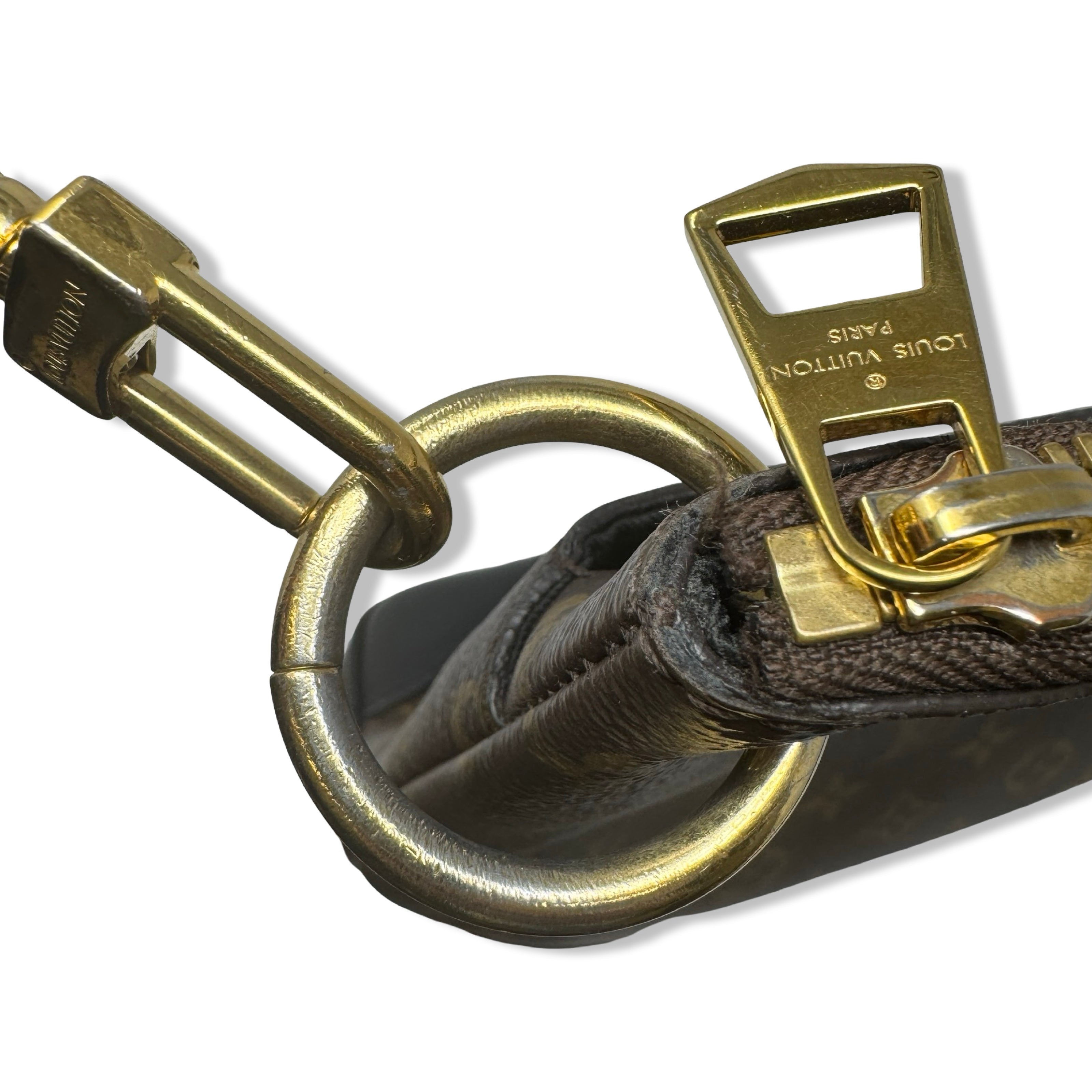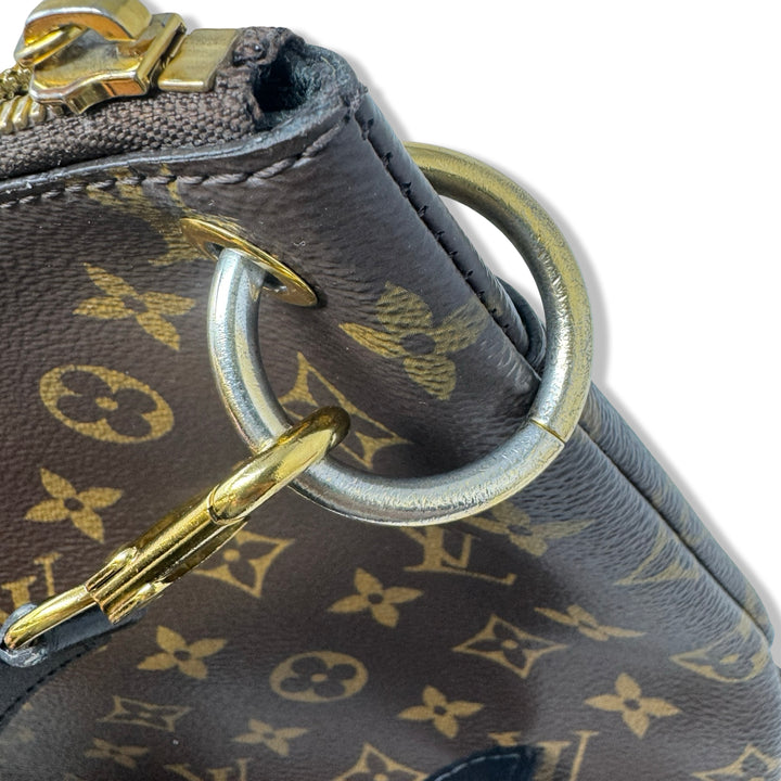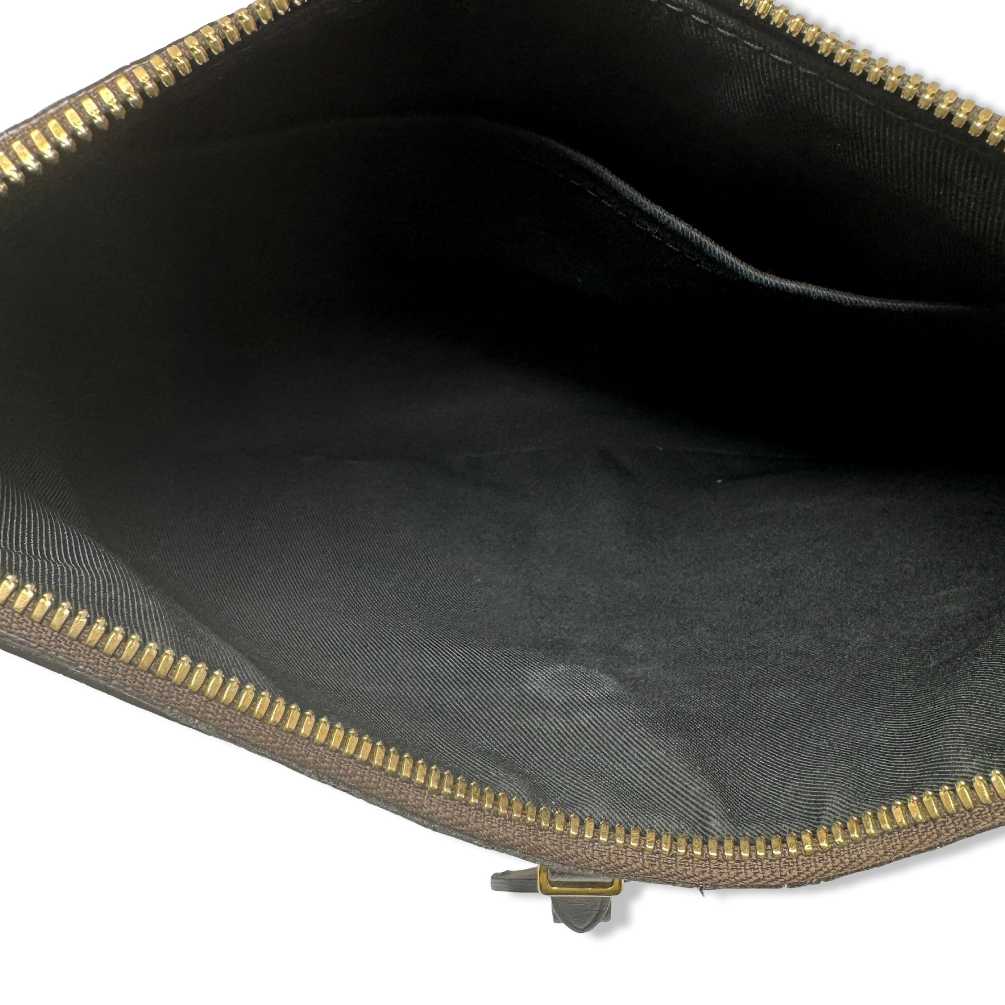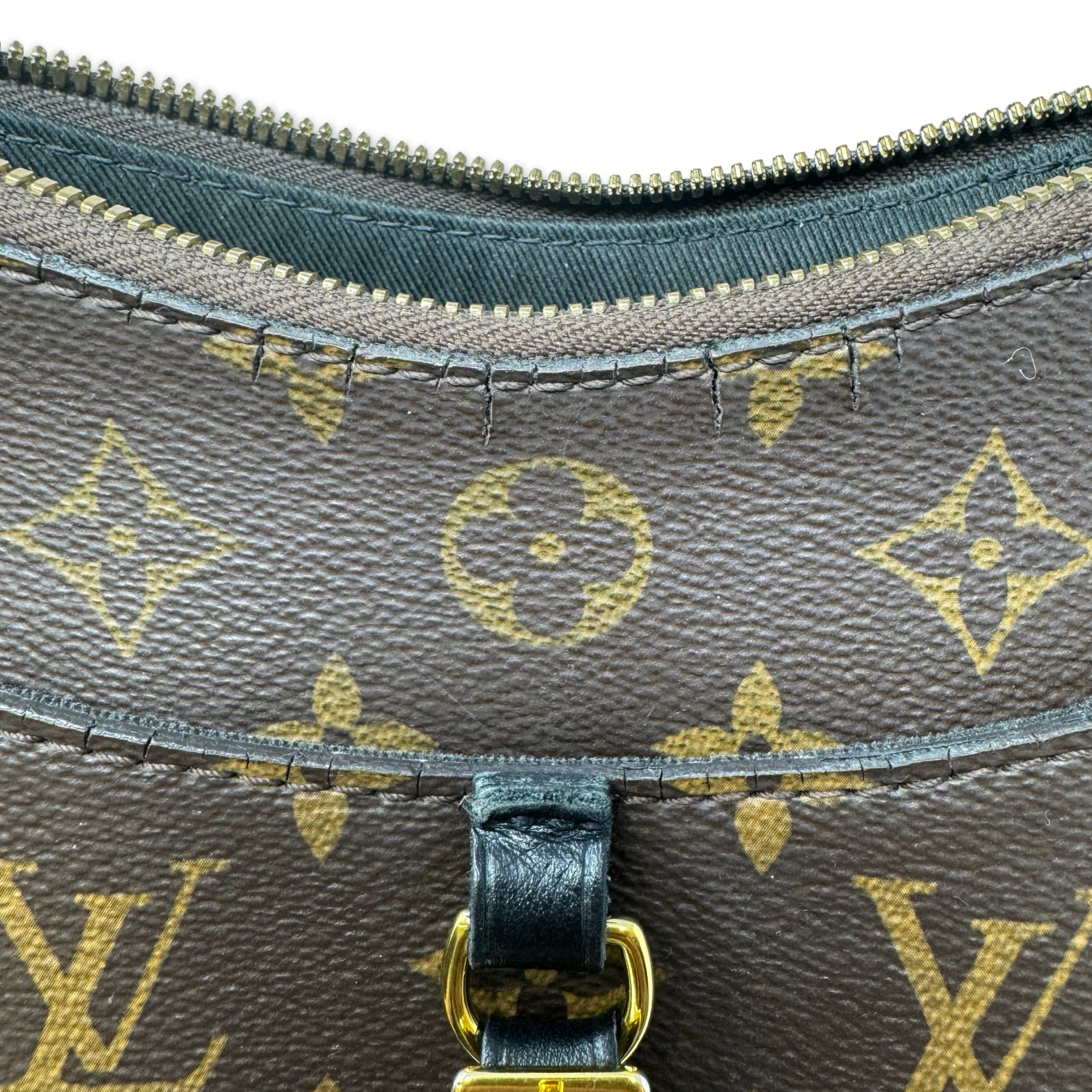 - This is an authentic LOUIS VUITTON Monogram Odeon MM in Black. This stylish messenger bag is crafted of signature Louis Vuitton monogram coated canvas with black leather trim. The bag features an adjustable shoulder strap with gold tone hardware and a flat front pocket for extra storage. The top zipper opens to a black fabric interior with a patch pocket. Designer dust bag included. Some wear throughout (Pictured)