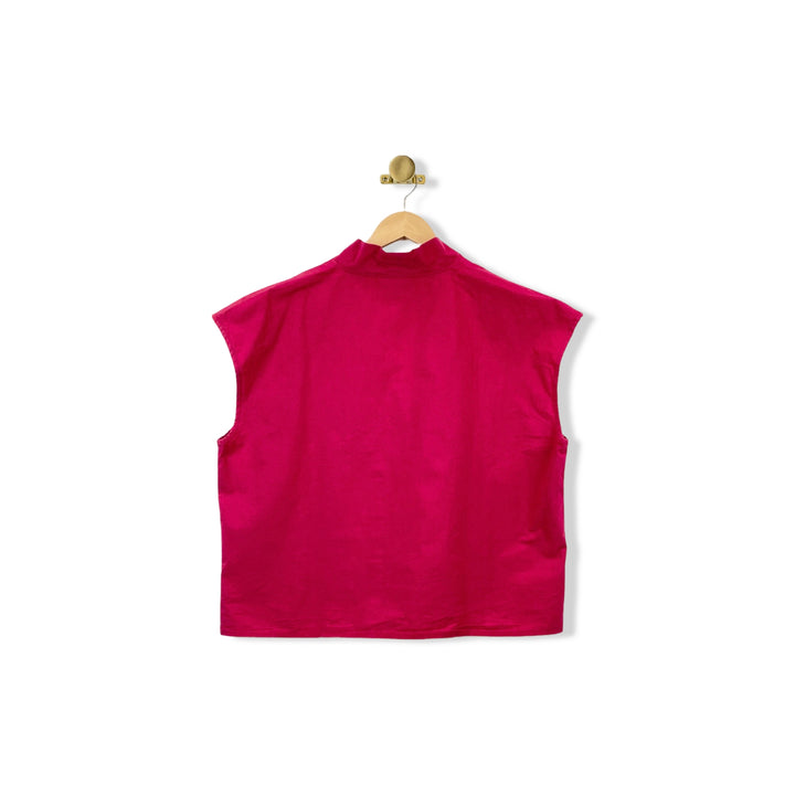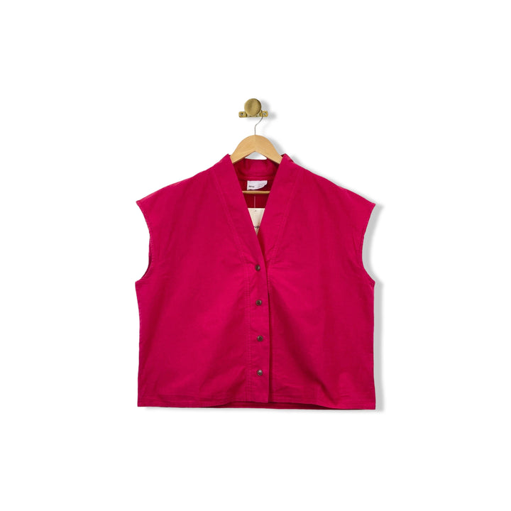 - Button up boxy fit top with cap sleeves