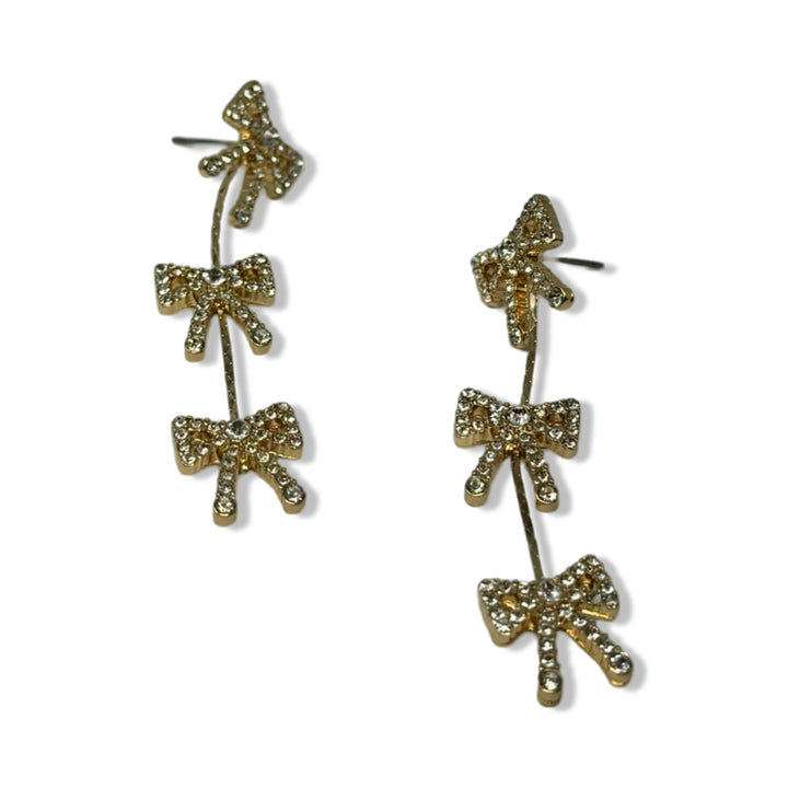 - Crystal embellished gold-tone metal bow earrings. Missing backing