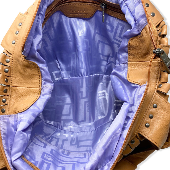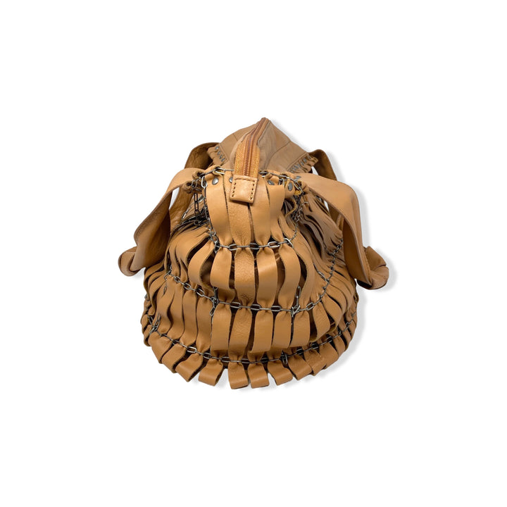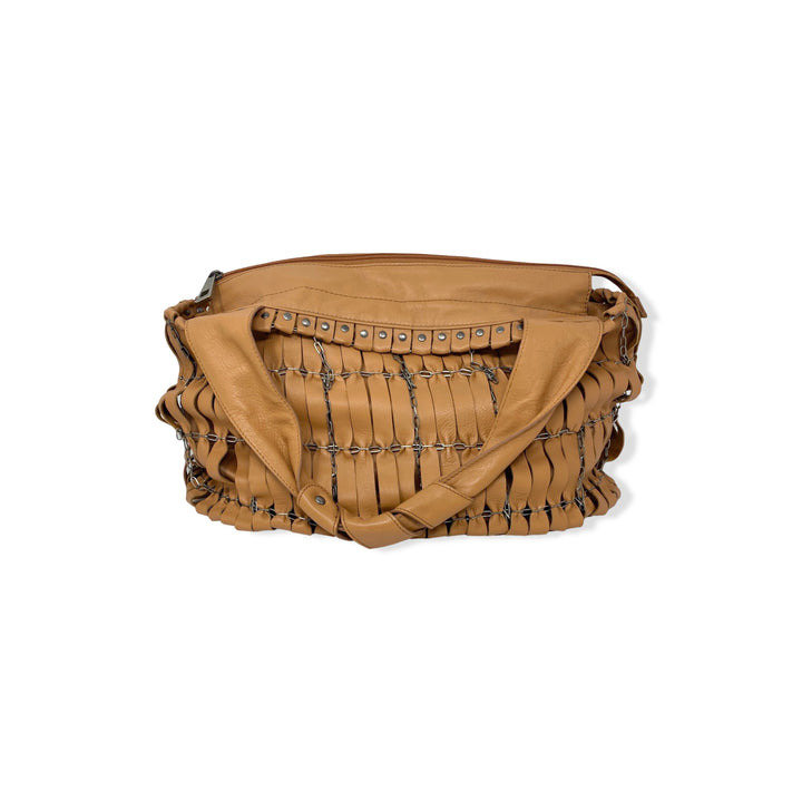 - Purse with studded and chain link details, one main inner compartment and three smaller inner pockets. Zip closure. Signs of light wear (pictured)