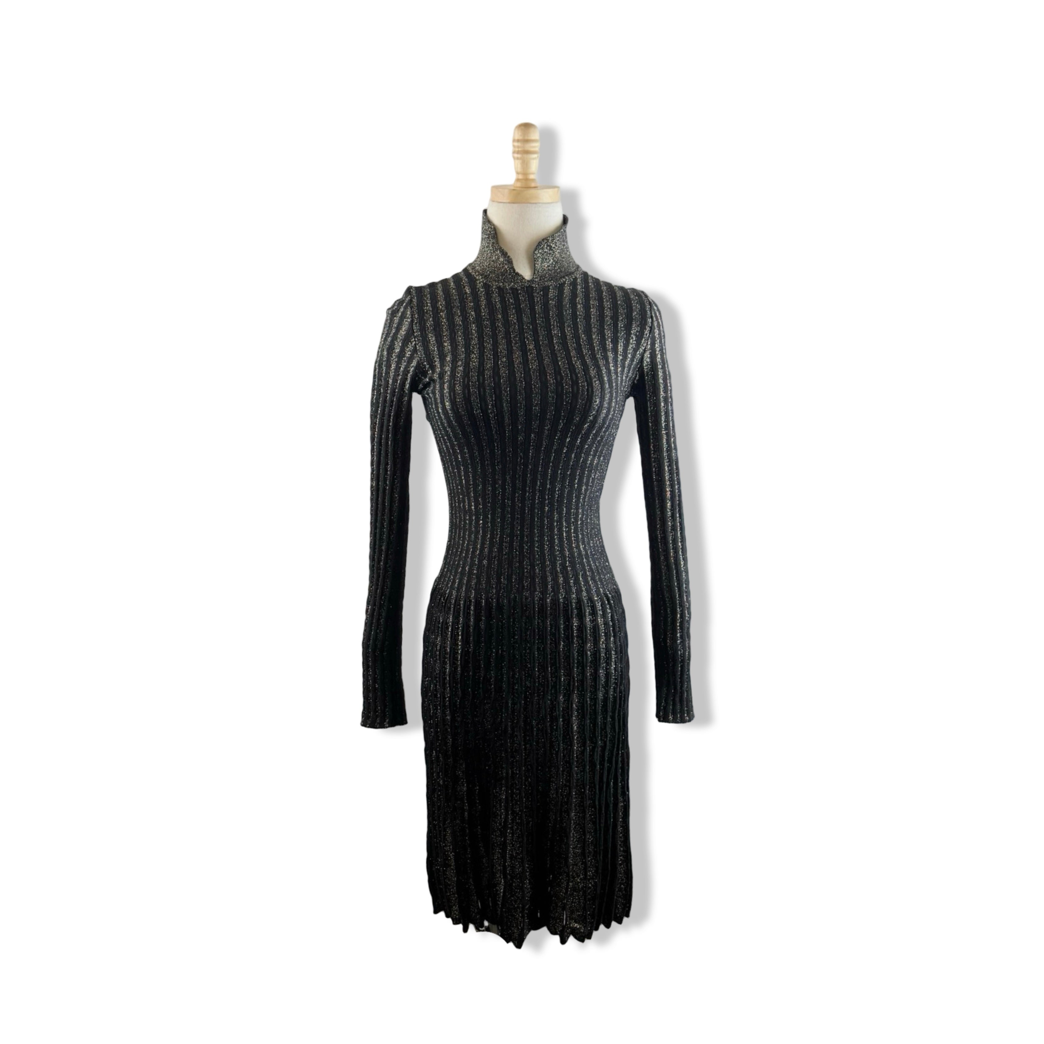 - Long sleeve ribbed dress with metallic glitter