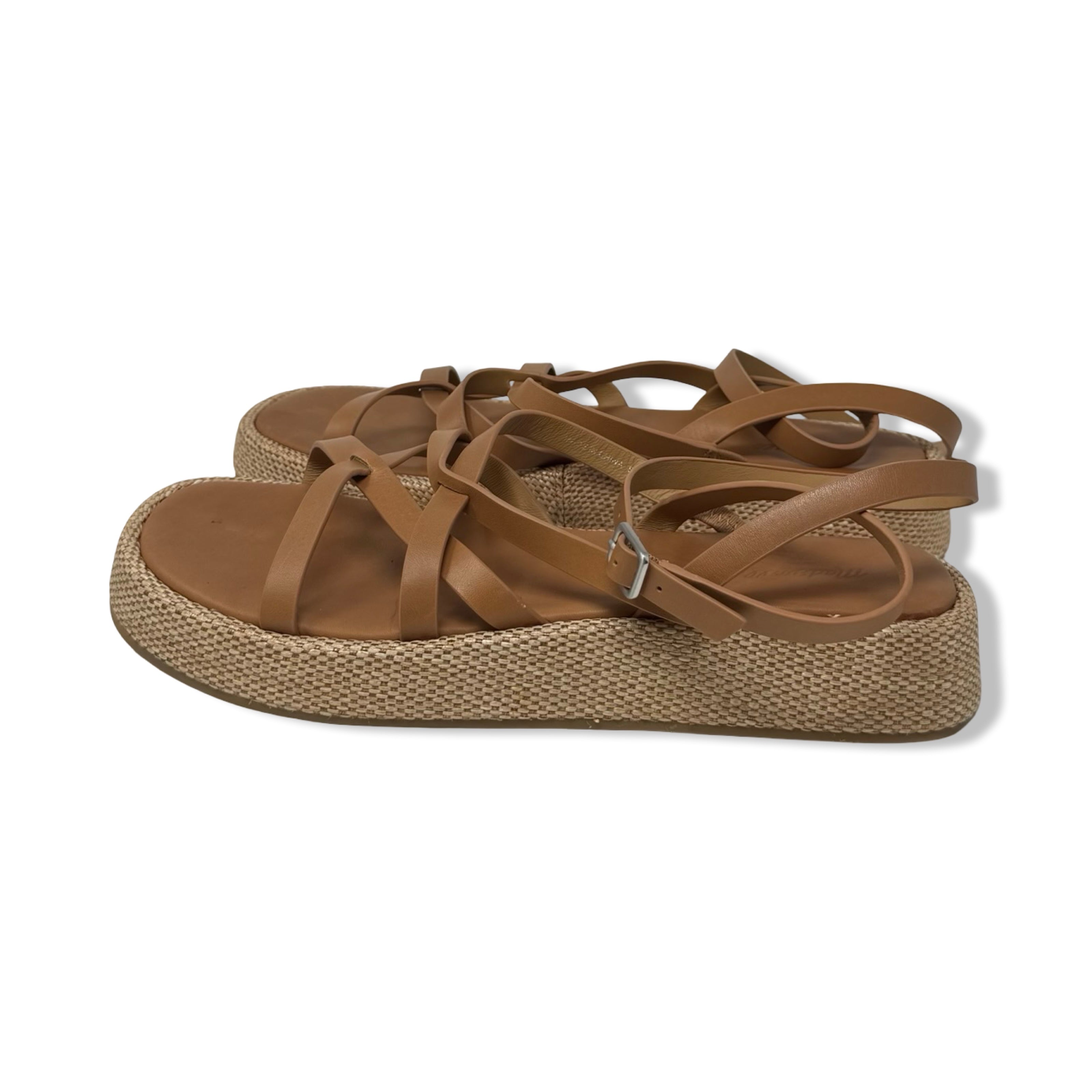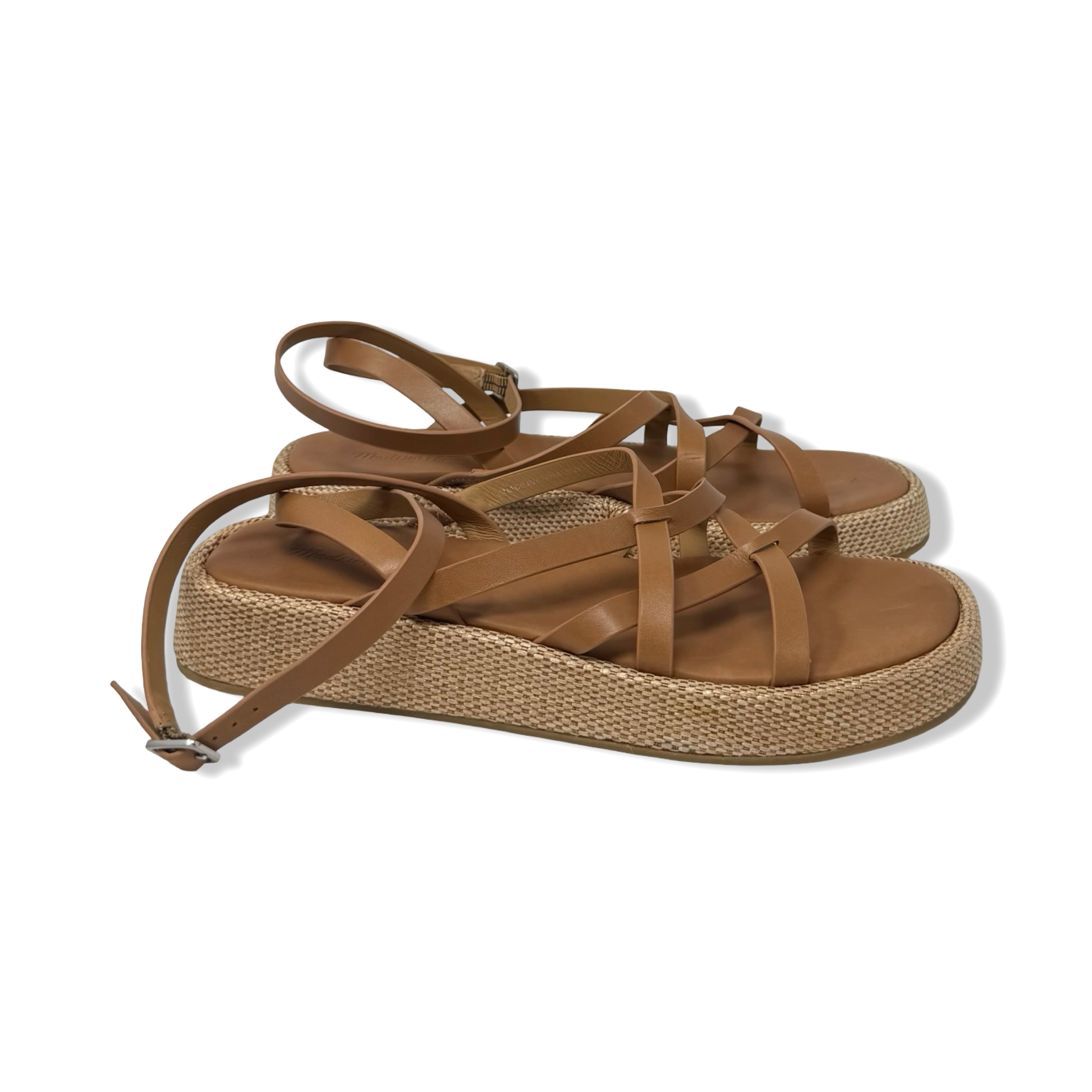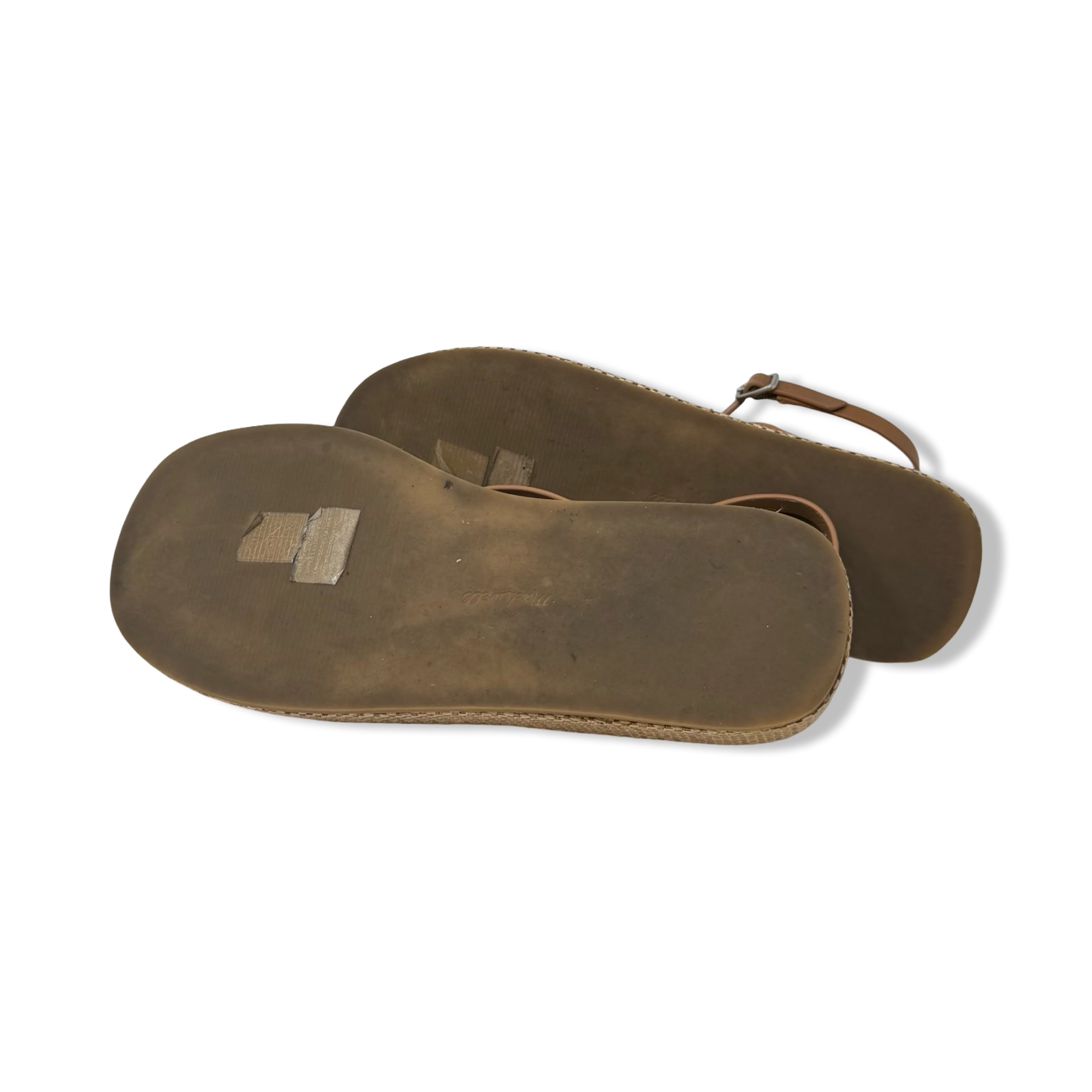 - Constructed from sleek leather, these sandals feature a square toe and flatform sole wrapped in raffia. Some signs of wear