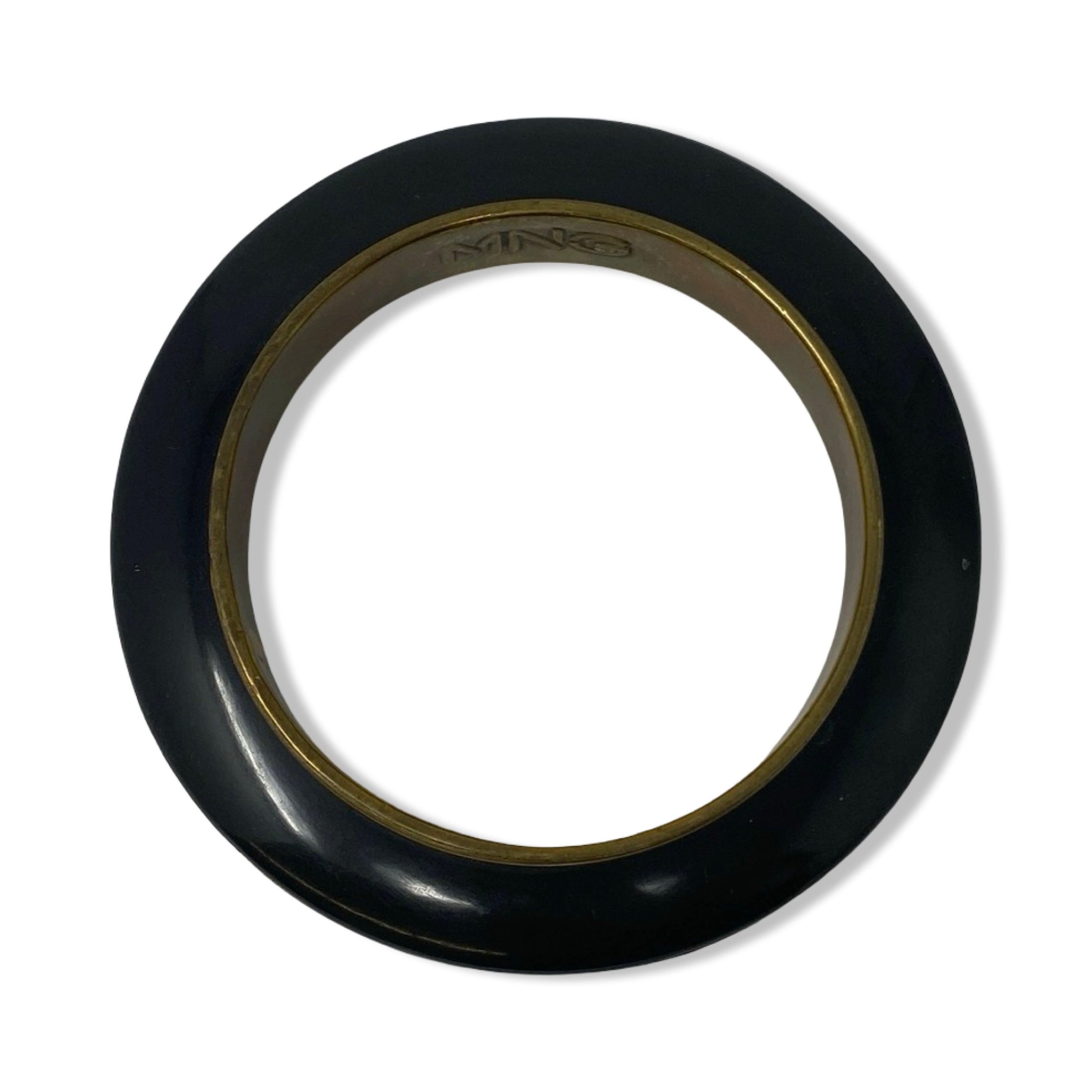 - Acrylic bangle with gold metal trim. Some signs of wear.