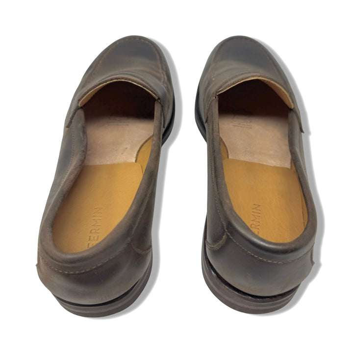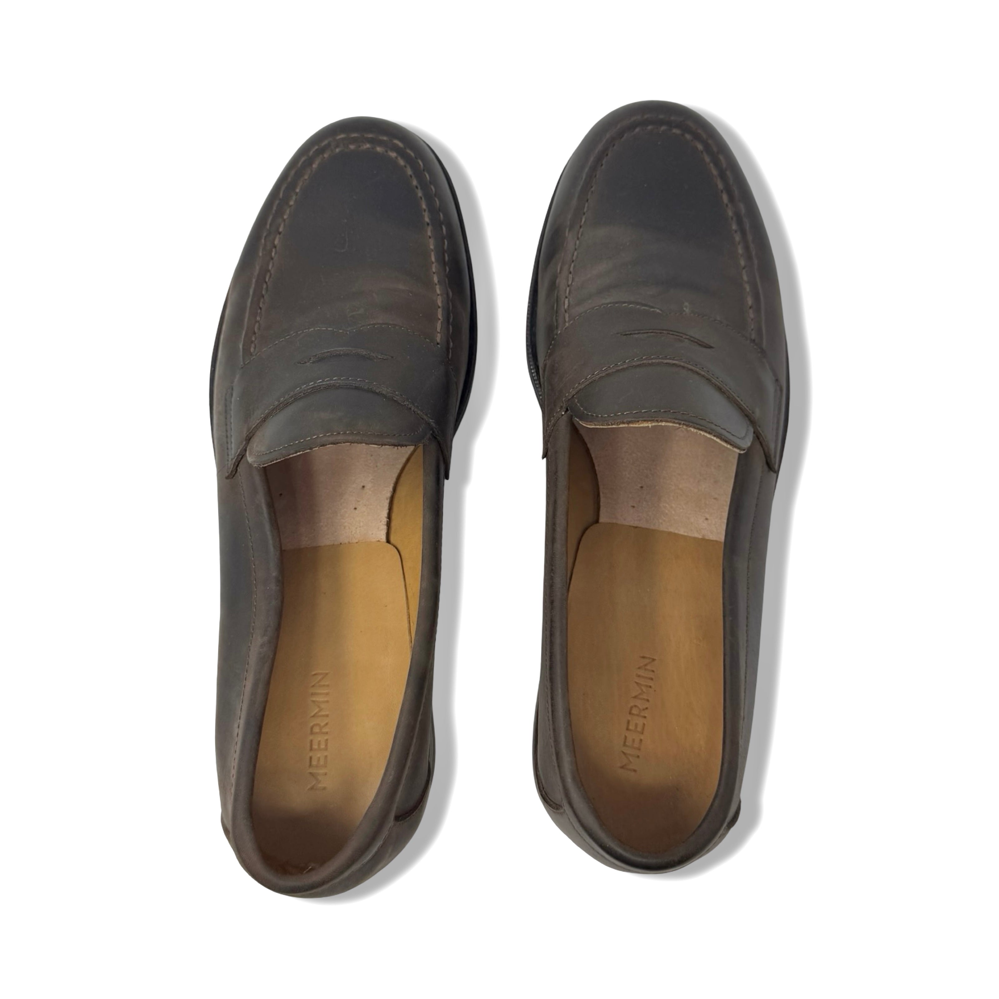 - Slip on loafers with contrast stitching. Labeled UK 8; approx. size US Men 9 according to brand website.