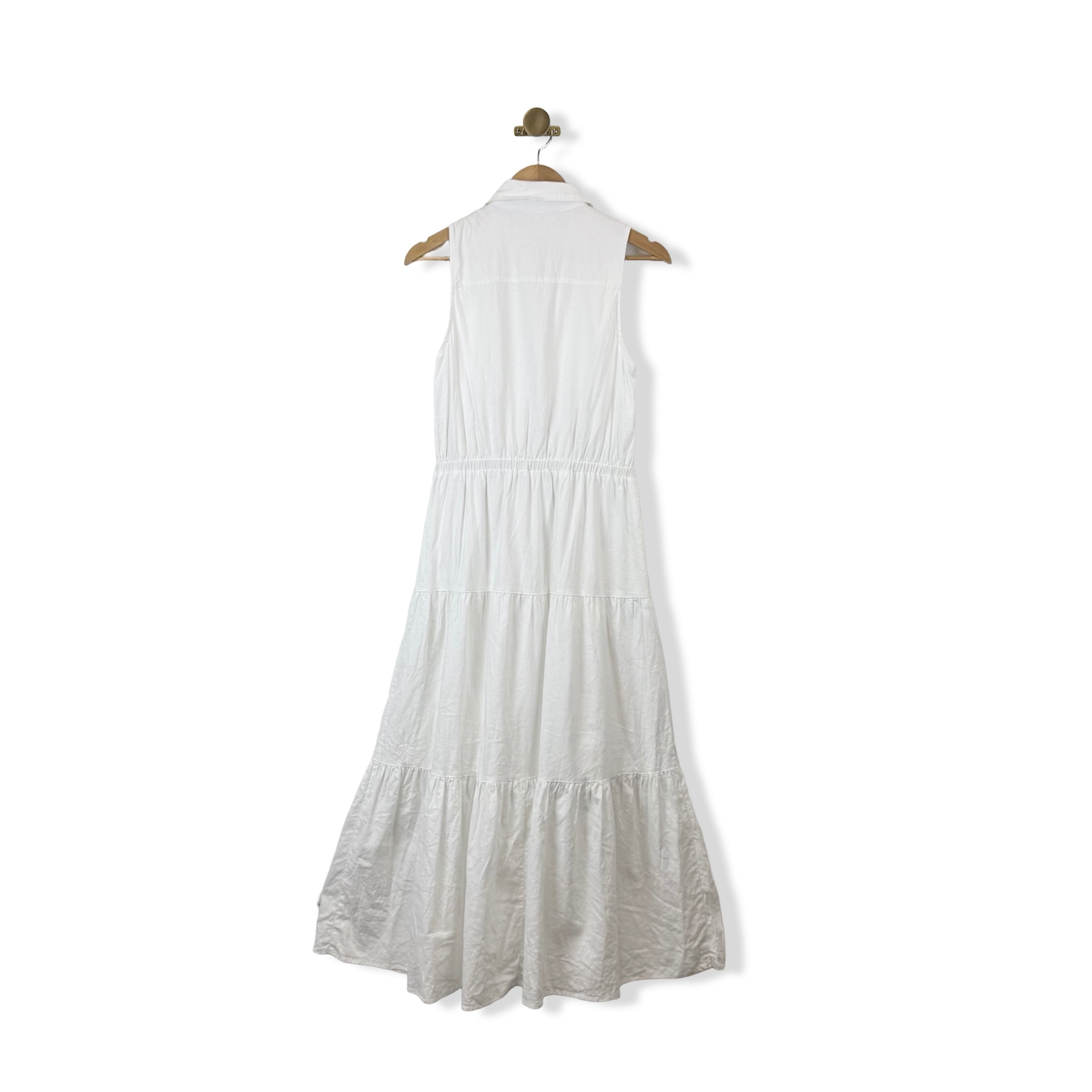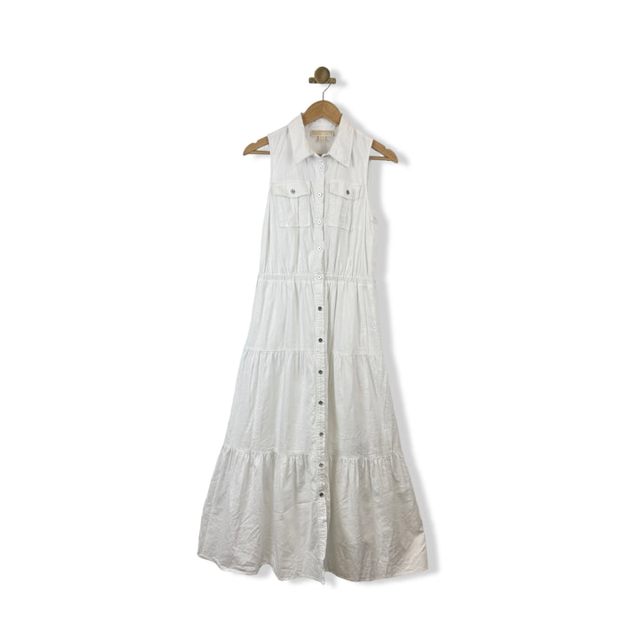 - Effortlessly chic and versatile, this sleeveless maxi dress features a button down design and practical dual front pockets.