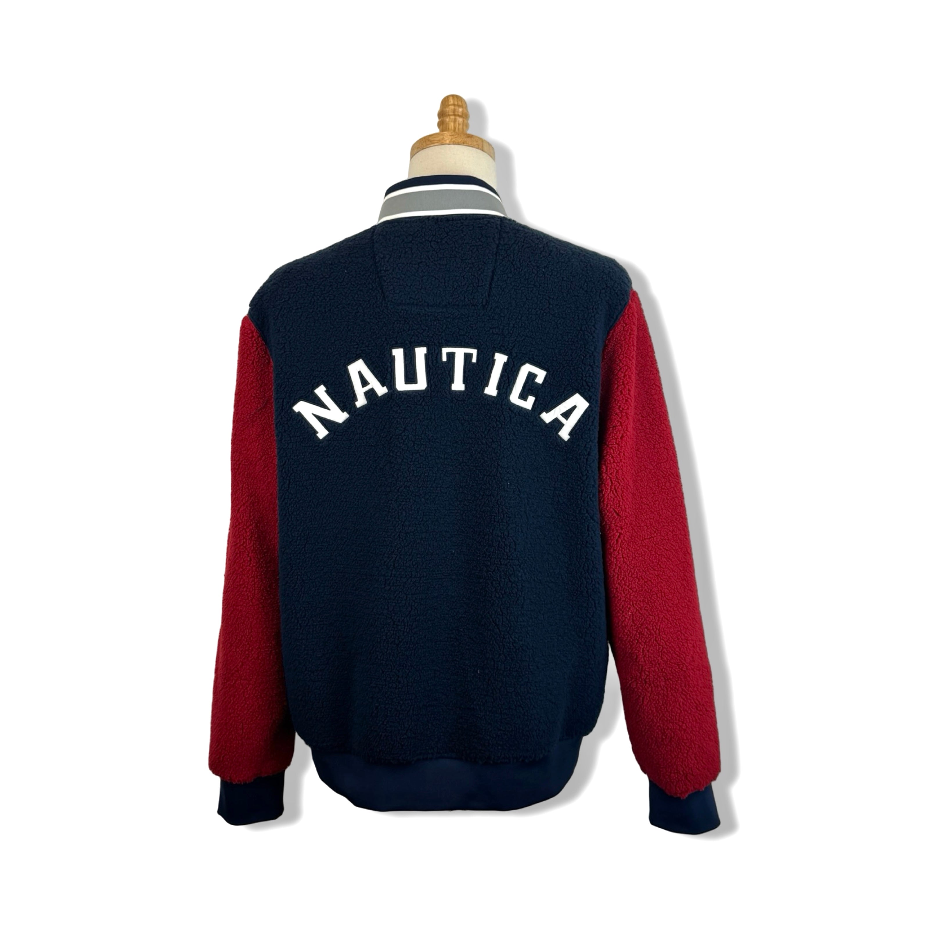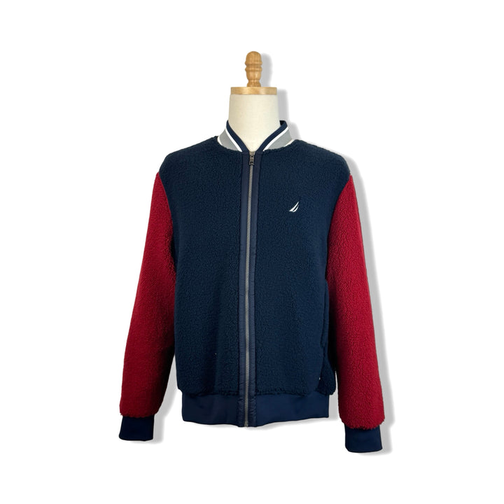 Nautica Faux Shearling Colorblock Zip-Up Fleece Jacket