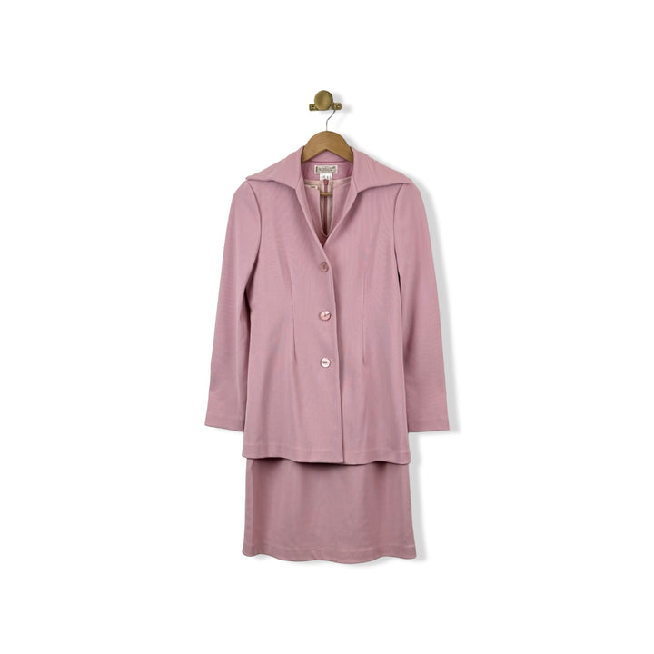 - Button down jacket and matching dress with back zip closure. Dress marked size IT 44, jacket size IT 42. Signs of wear (pictured)