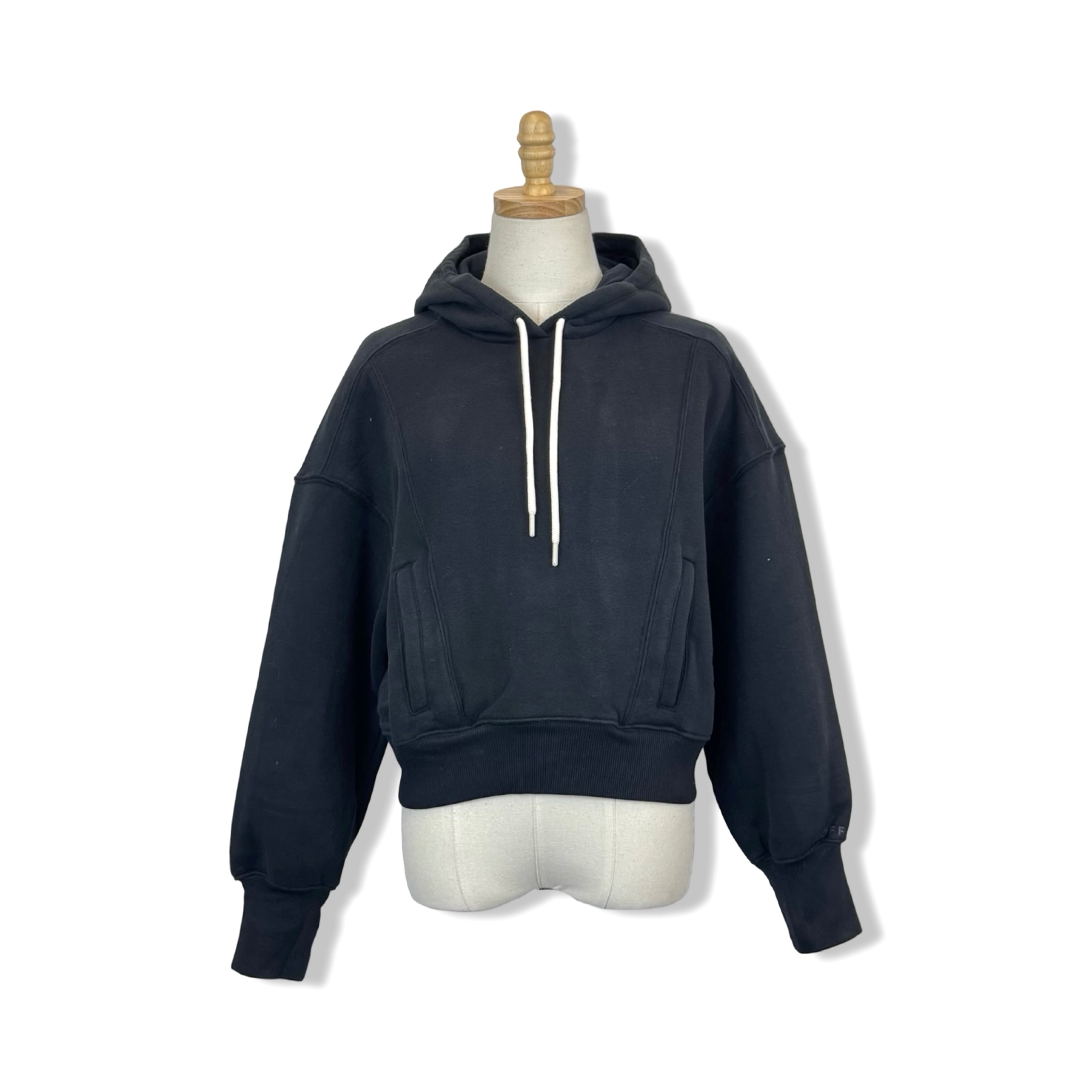 - This cropped hoodie features drawstrings and a kangaroo pocket for convenience, while the ribbed trim adds a touch of texture. Stay cozy and fashionable at the same time.