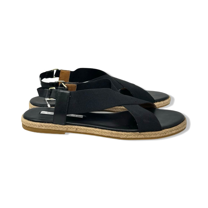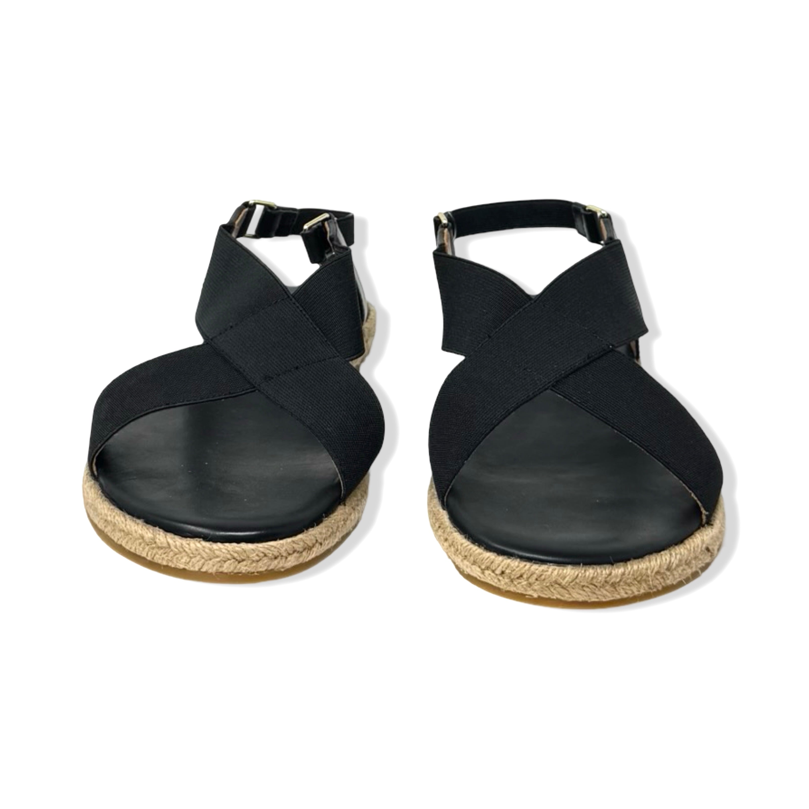 - These sandals feature elastic straps that criss-cross with a hint of gold hardware. Labeled size EU 40; approx. size US 9.5