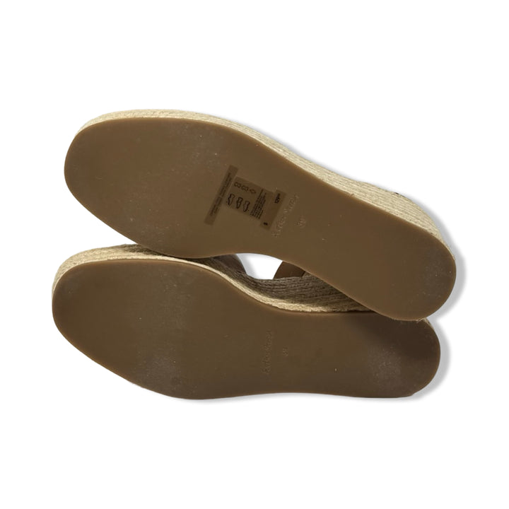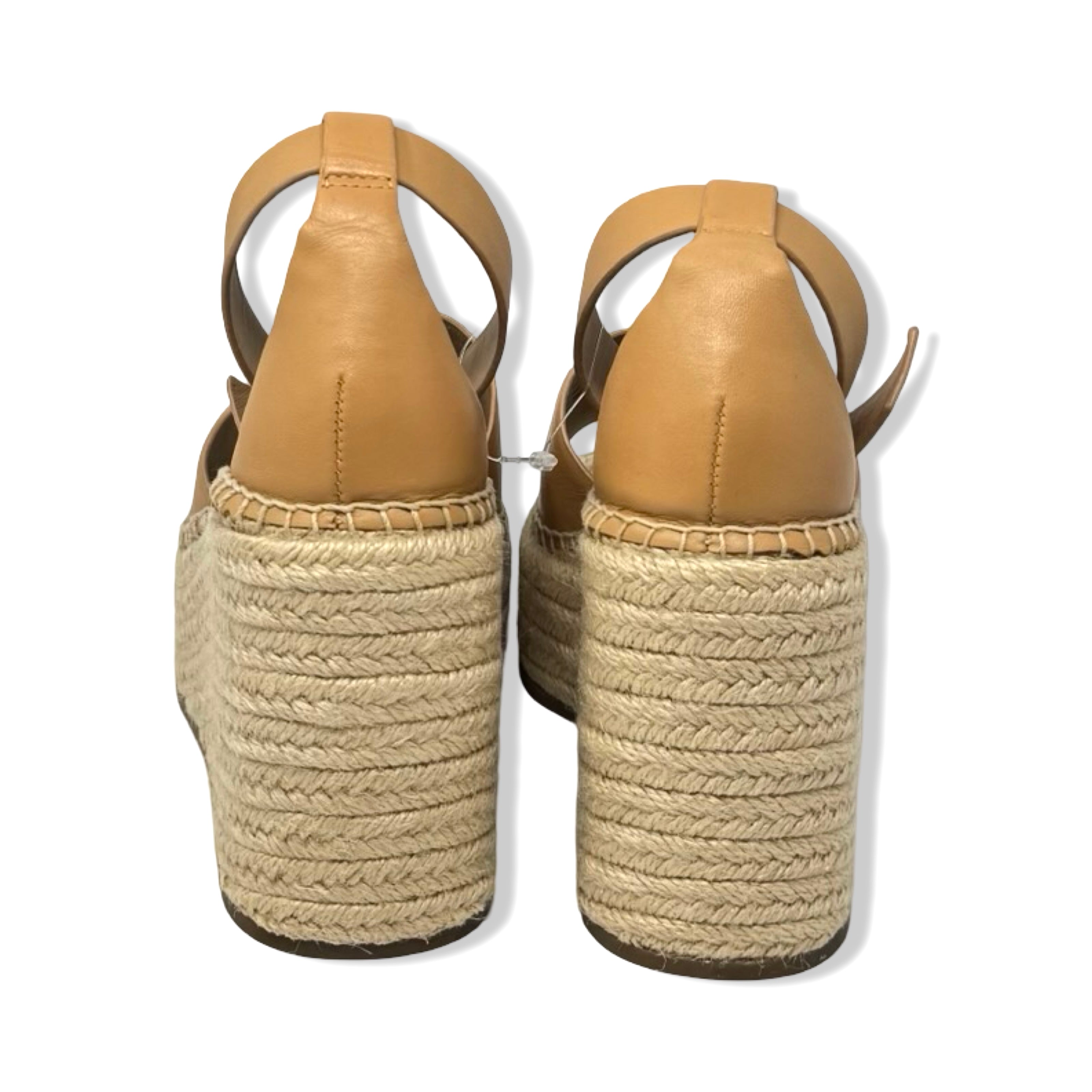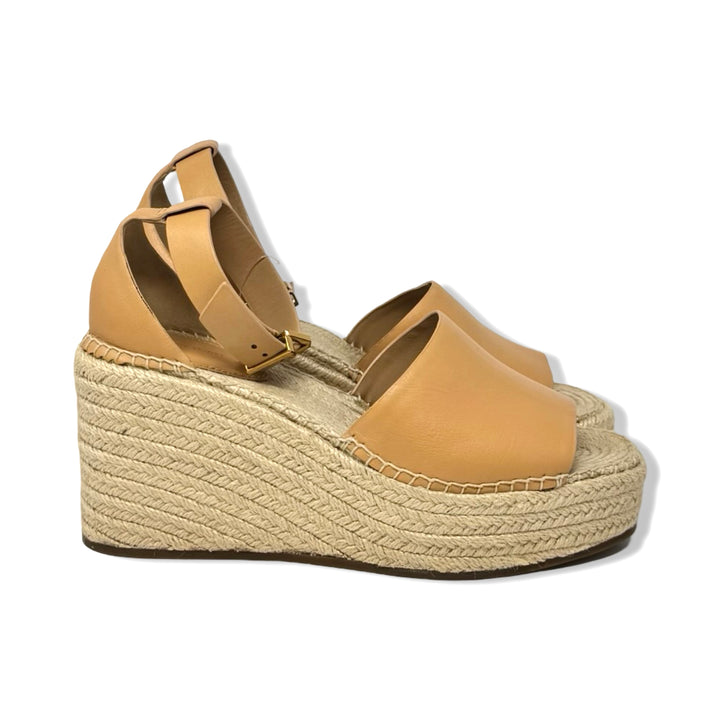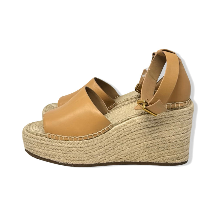 - Lift your look with these wedged heels featuring a leather strap and buckle closure. Labeled size US 9 and 10.5