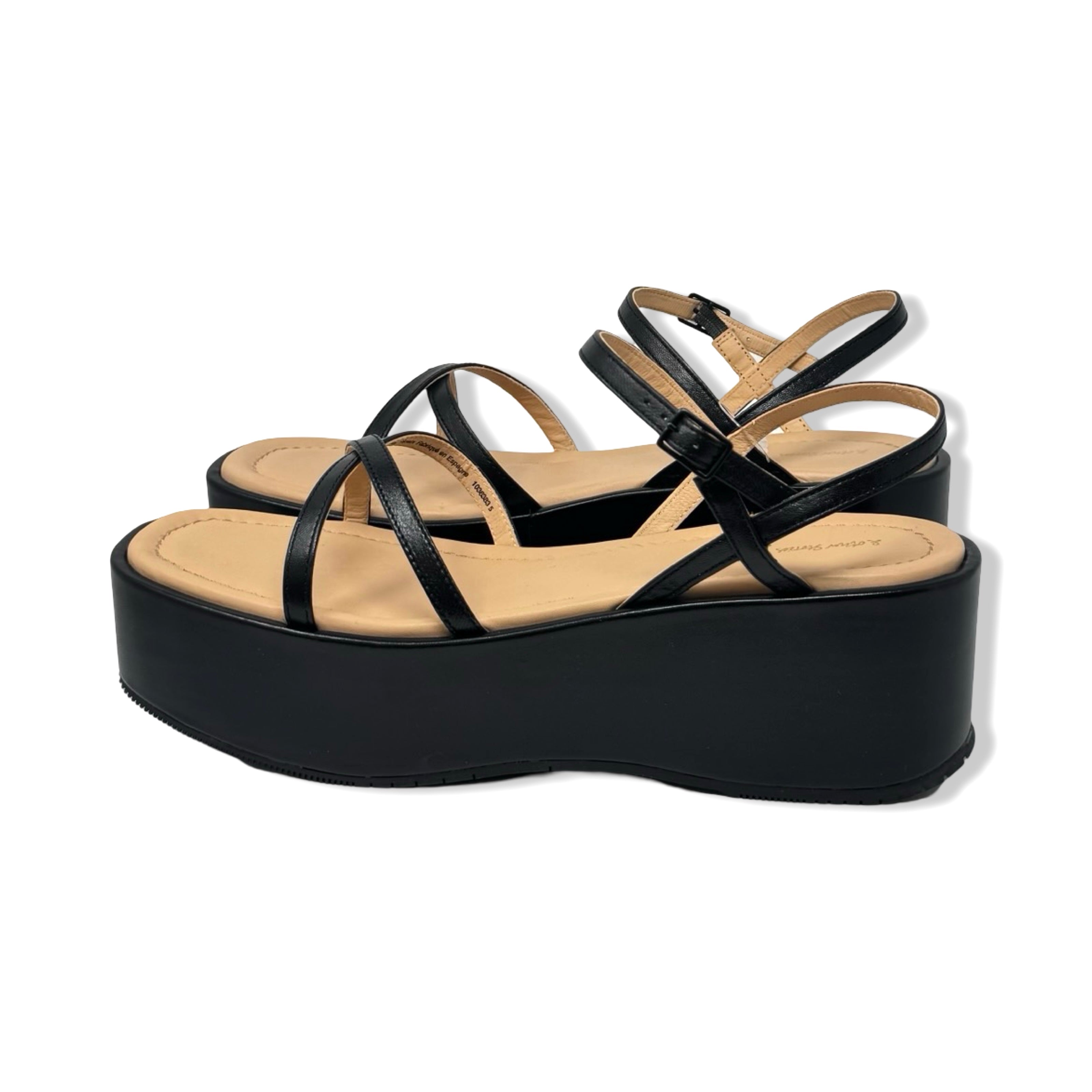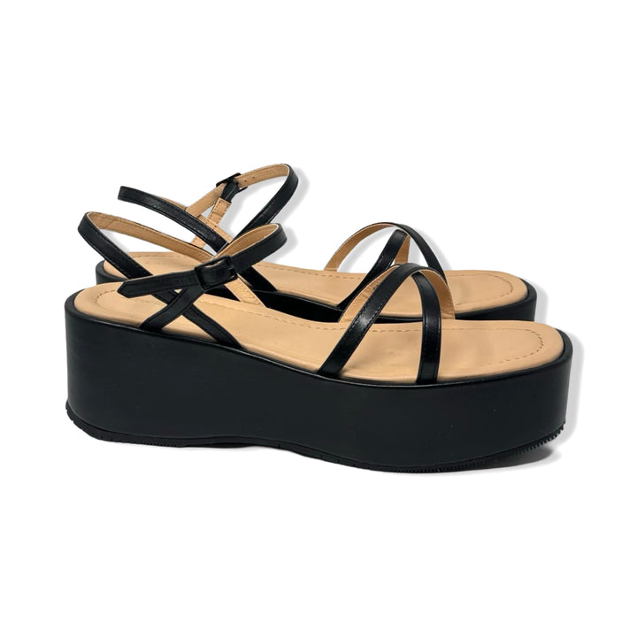 - Catch some serious style with these platform sandals featuring a thin strap and buckle closure on the ankle!
