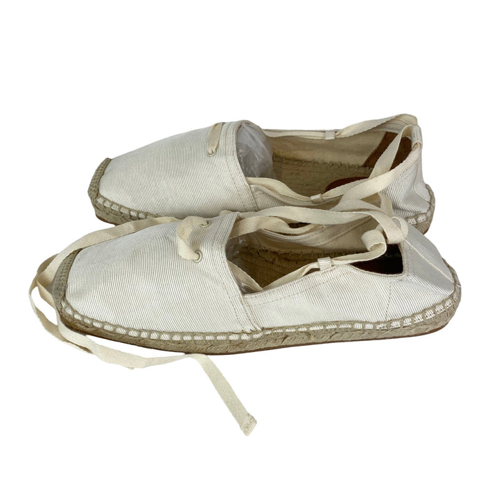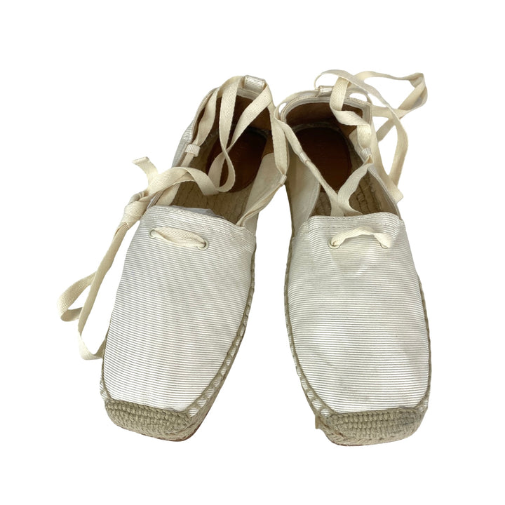- These espadrilles feature a square toe and are equipped with lace up ribbons for a chic look.