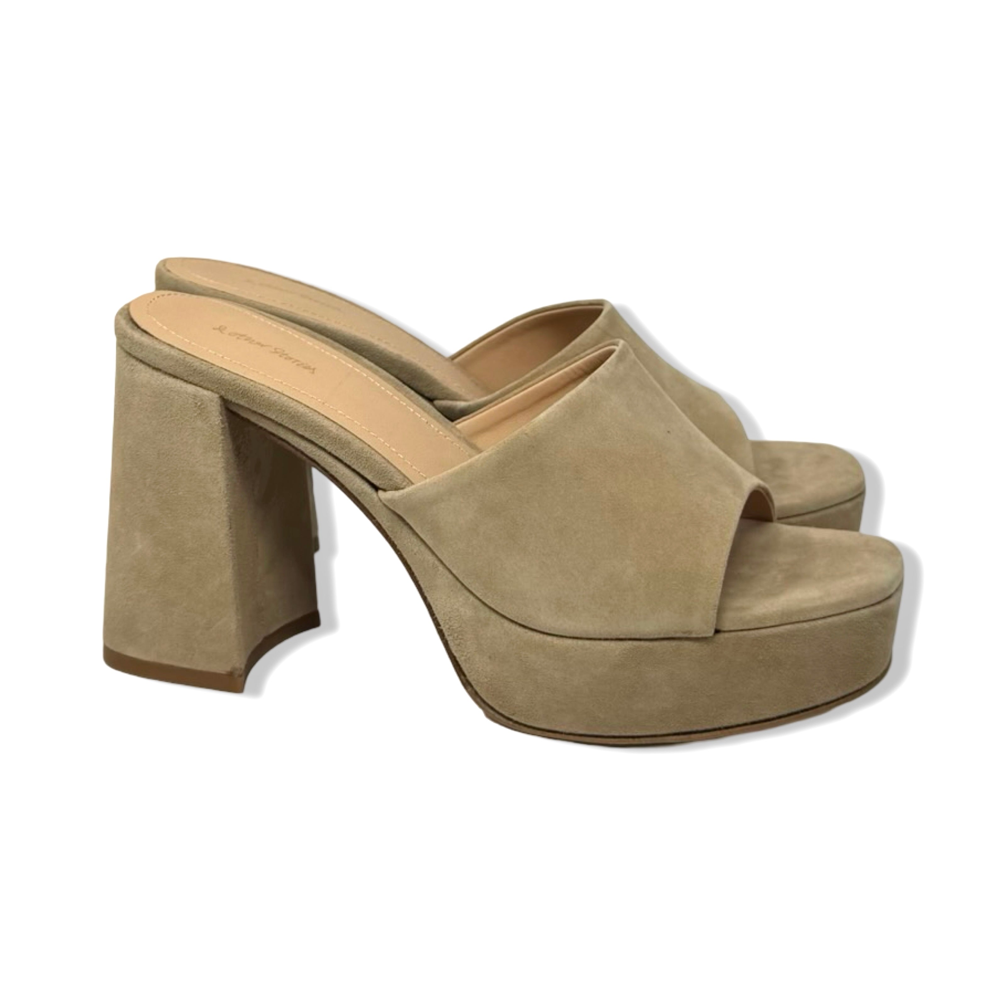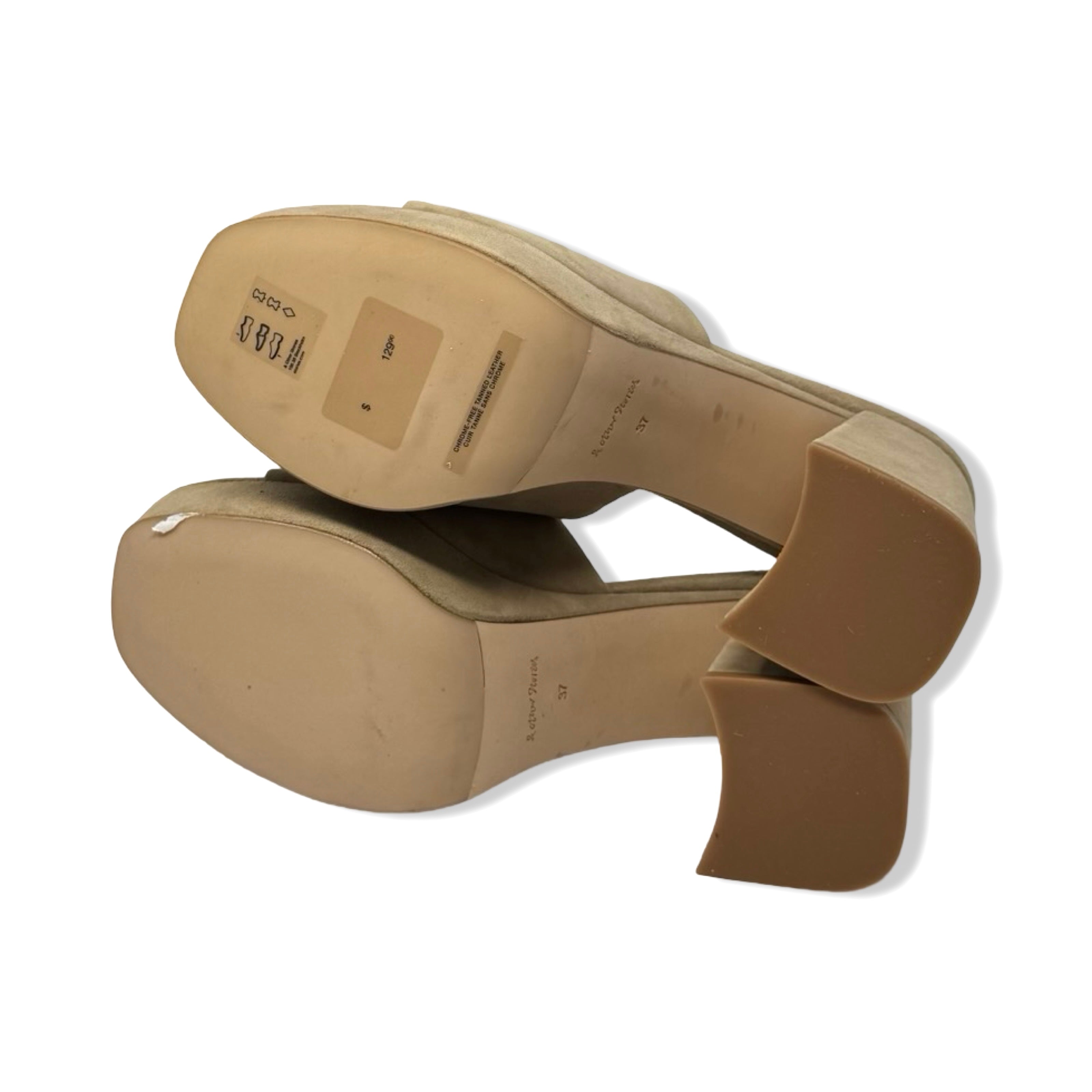 - Slip on these suede platforms with a square toe for a chic and playful look.. Labeled size EU 37; approx. size US 6