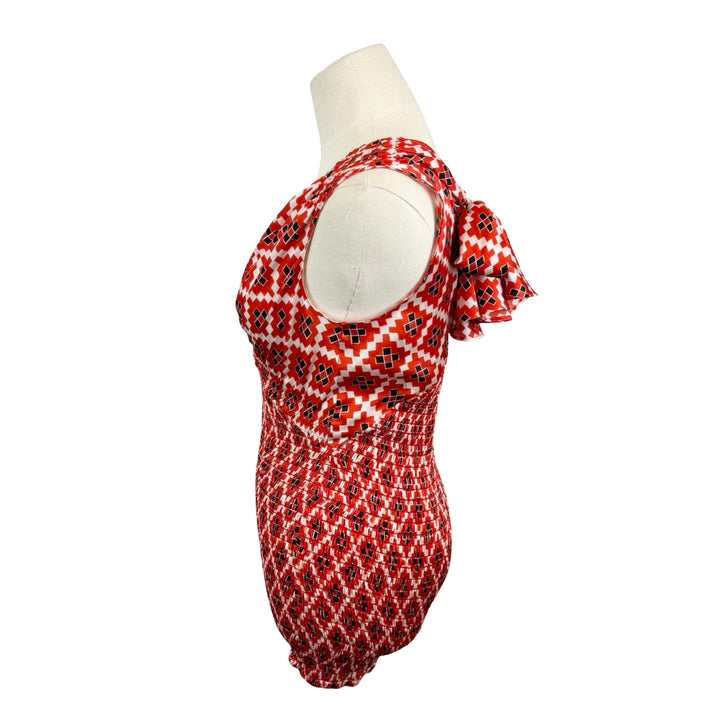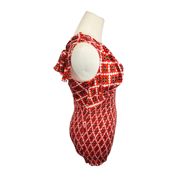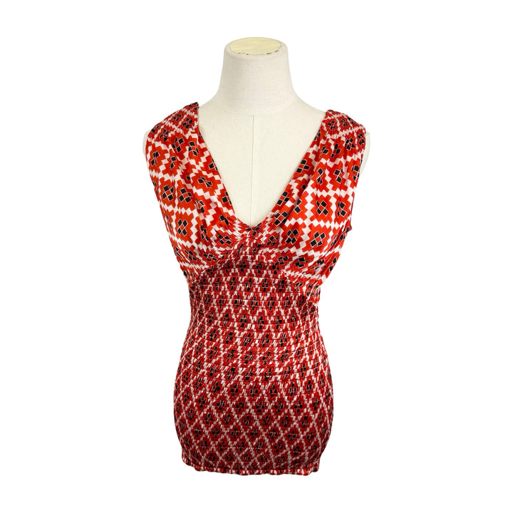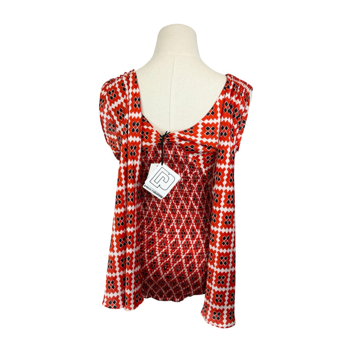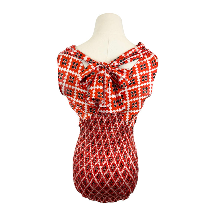 - Patterned blouse with back tie and smock detailing. Labeled size FR 38; approx. size US Small. Please check measurements for reference.