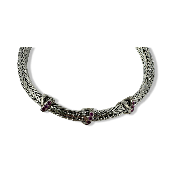 Phillip Gavriel Woven Criss Cross Pink Saphire Bracelet