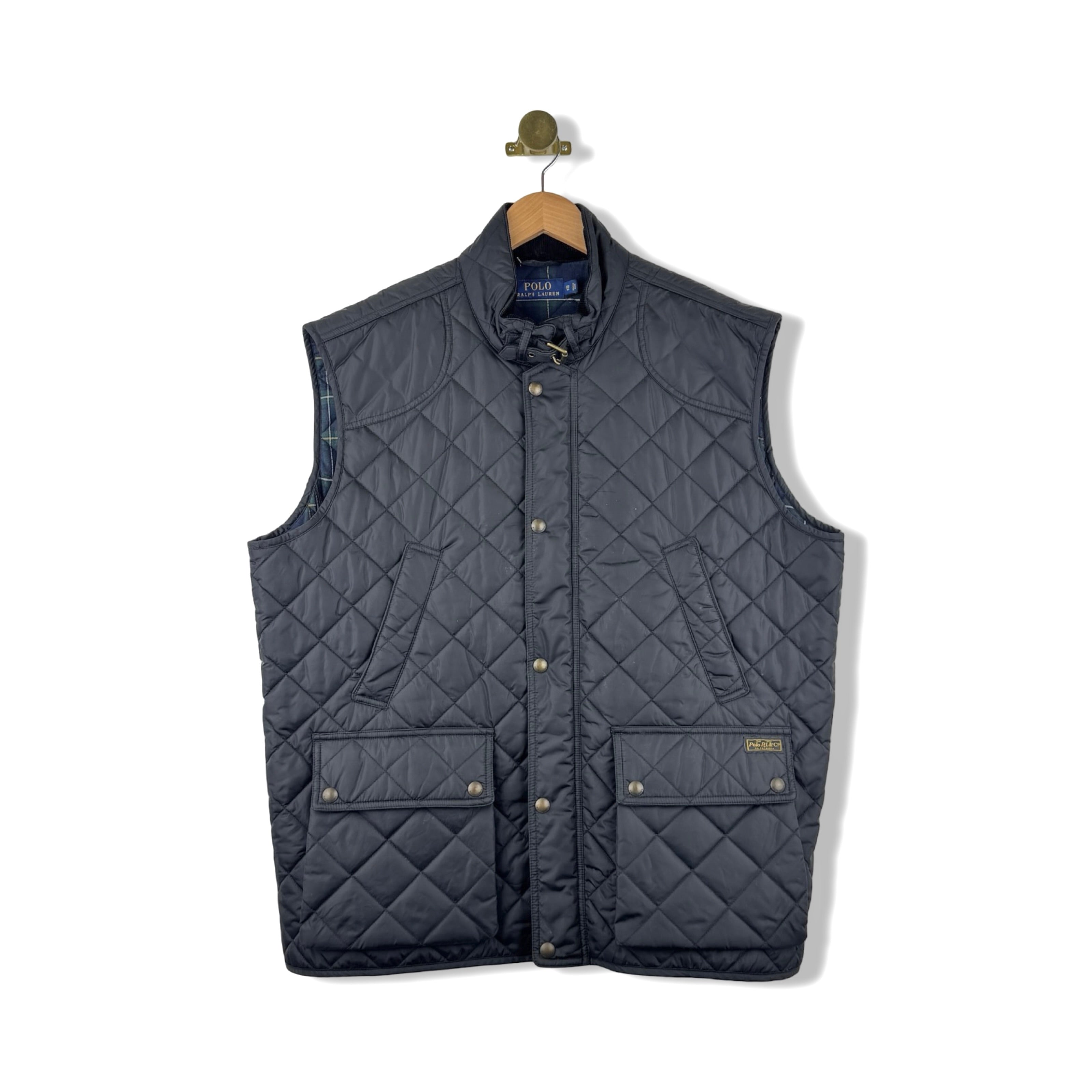 - Zip up vest with button placket, front pockets, corduroy interior collar, and snap closure tabs on back.
