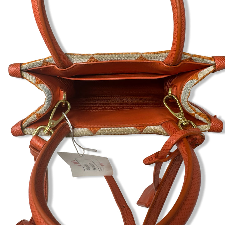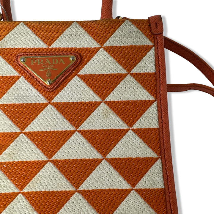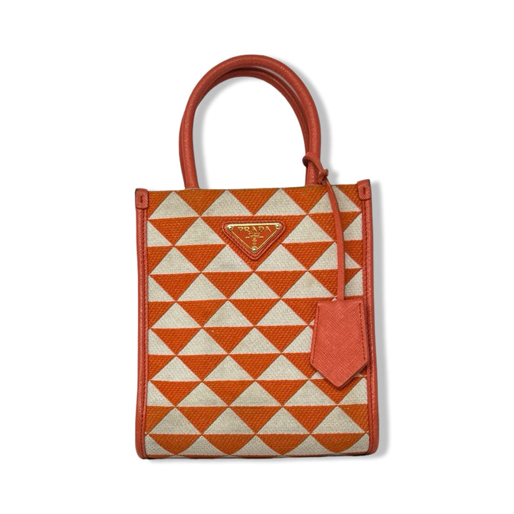 - Symbole jacquard mini bag from PRADA featuring tonal logo plaque, two top handles and internal patch pocket. Designer dust bag included. Some wear throughout (Pictured)
