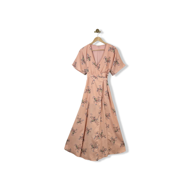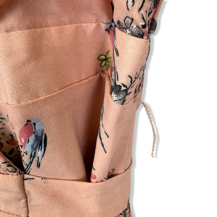 - Maxi wrap dress with self tie and floral bird patterning. Signs of wear (pictured)