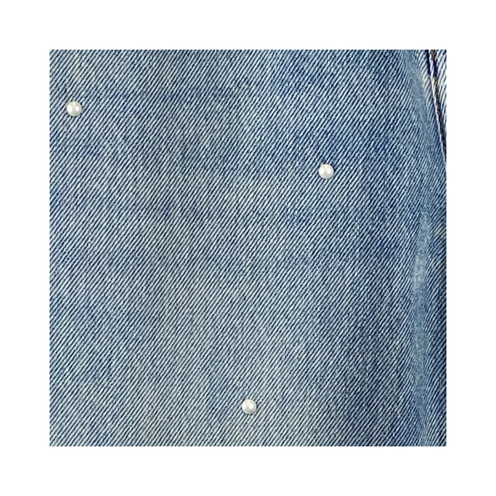 - Crafted from premium light indigo denim with all over hotfix pearls, this high-rise is cut with a wide, relaxed leg. It features five pocket styling, reinforced belt loops, bar-tack stitching, chambray lining for a more comfortable fit, a custom Purple cowhide leather patch and signature hangtag branding.