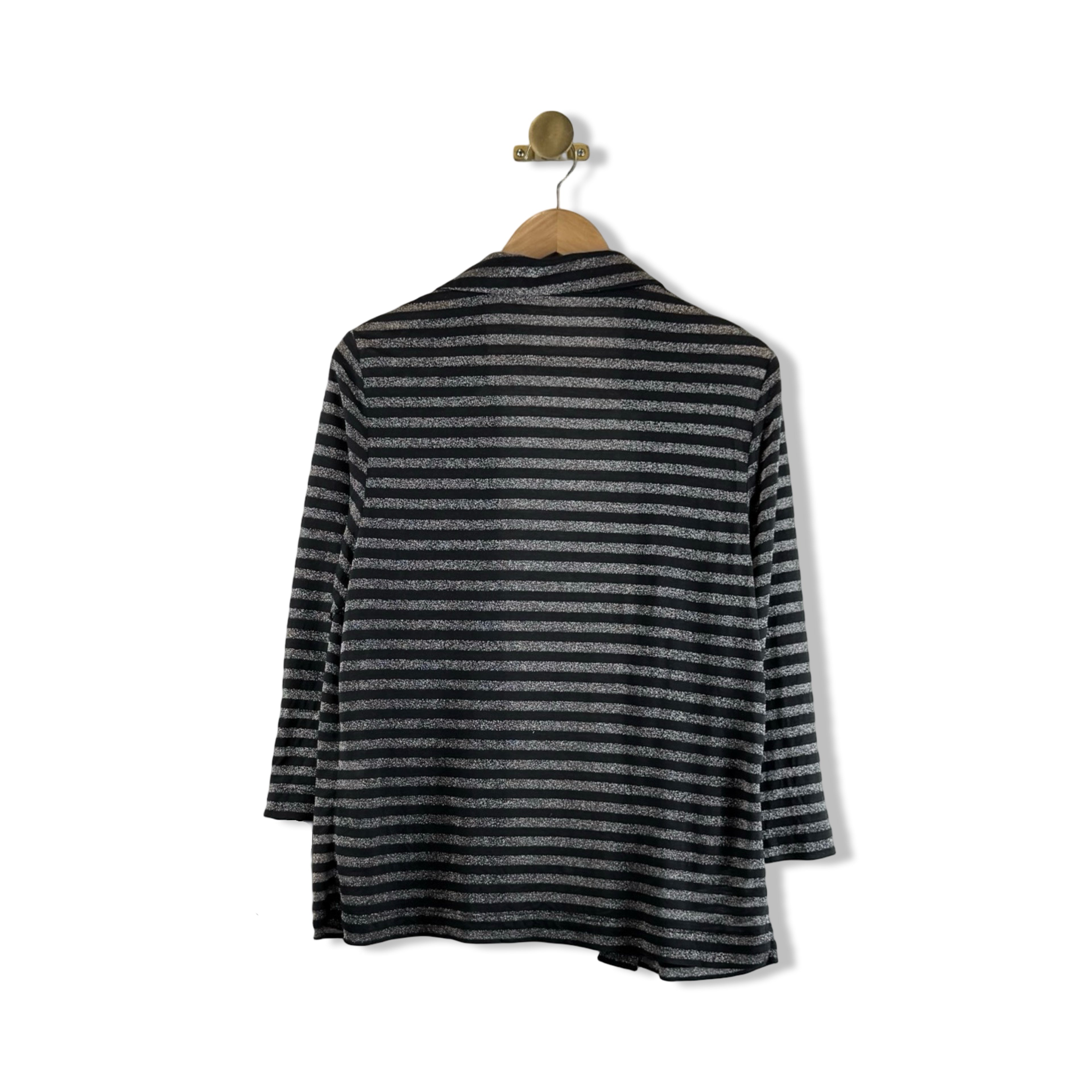 - Open front sheer metallic striped cardigan. Labeled size BR 44; approx. size US Medium. Please check measurements for reference.