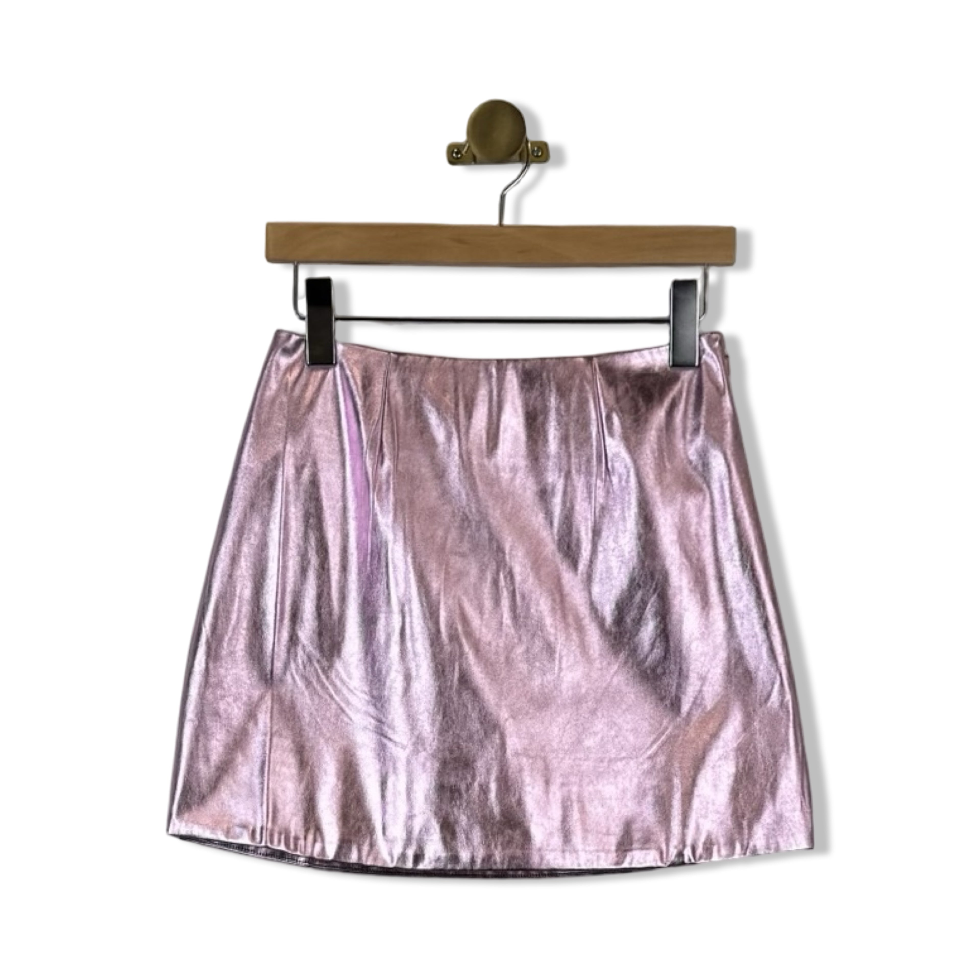 - A little bit of shine in the form of a mini skirt made from vegan leather.