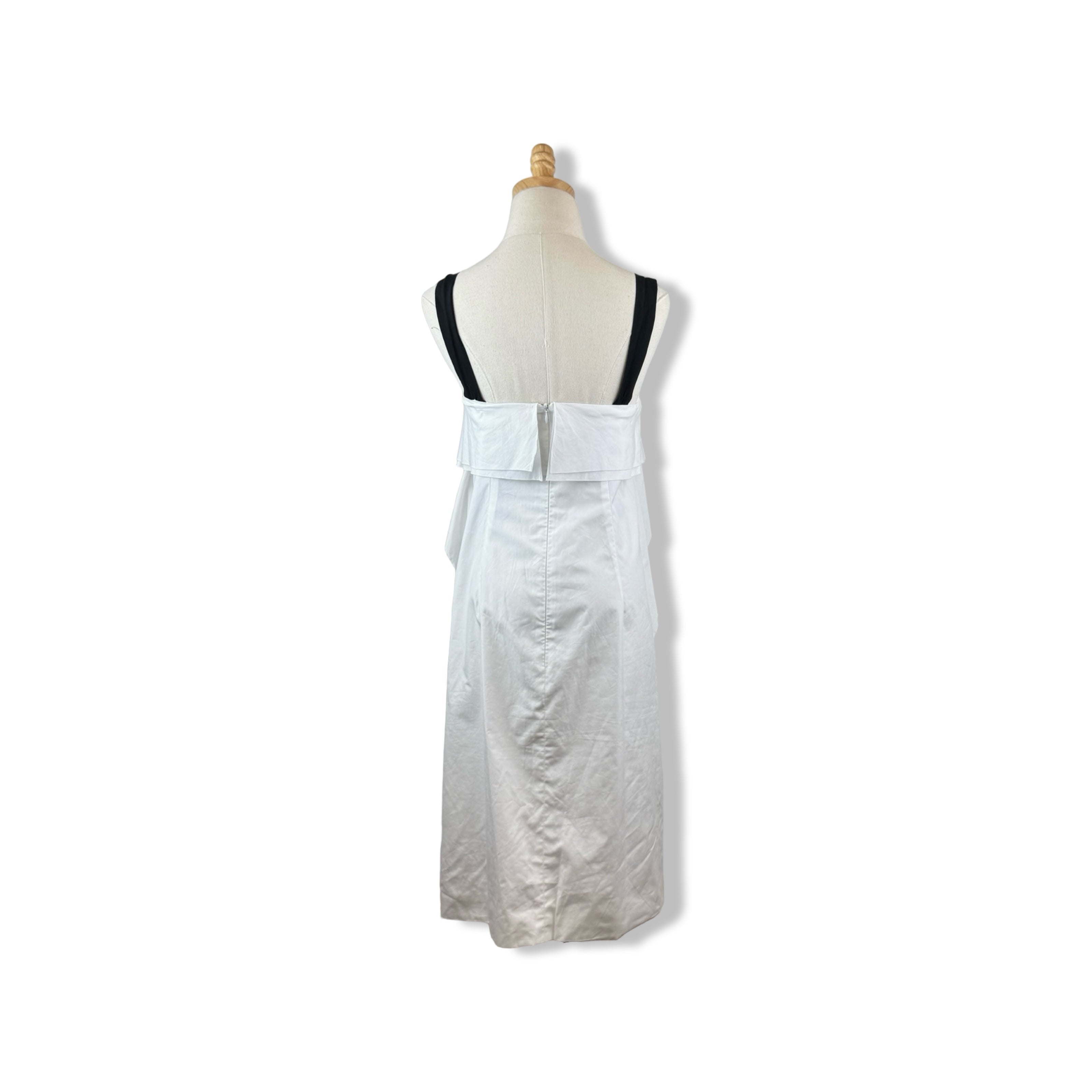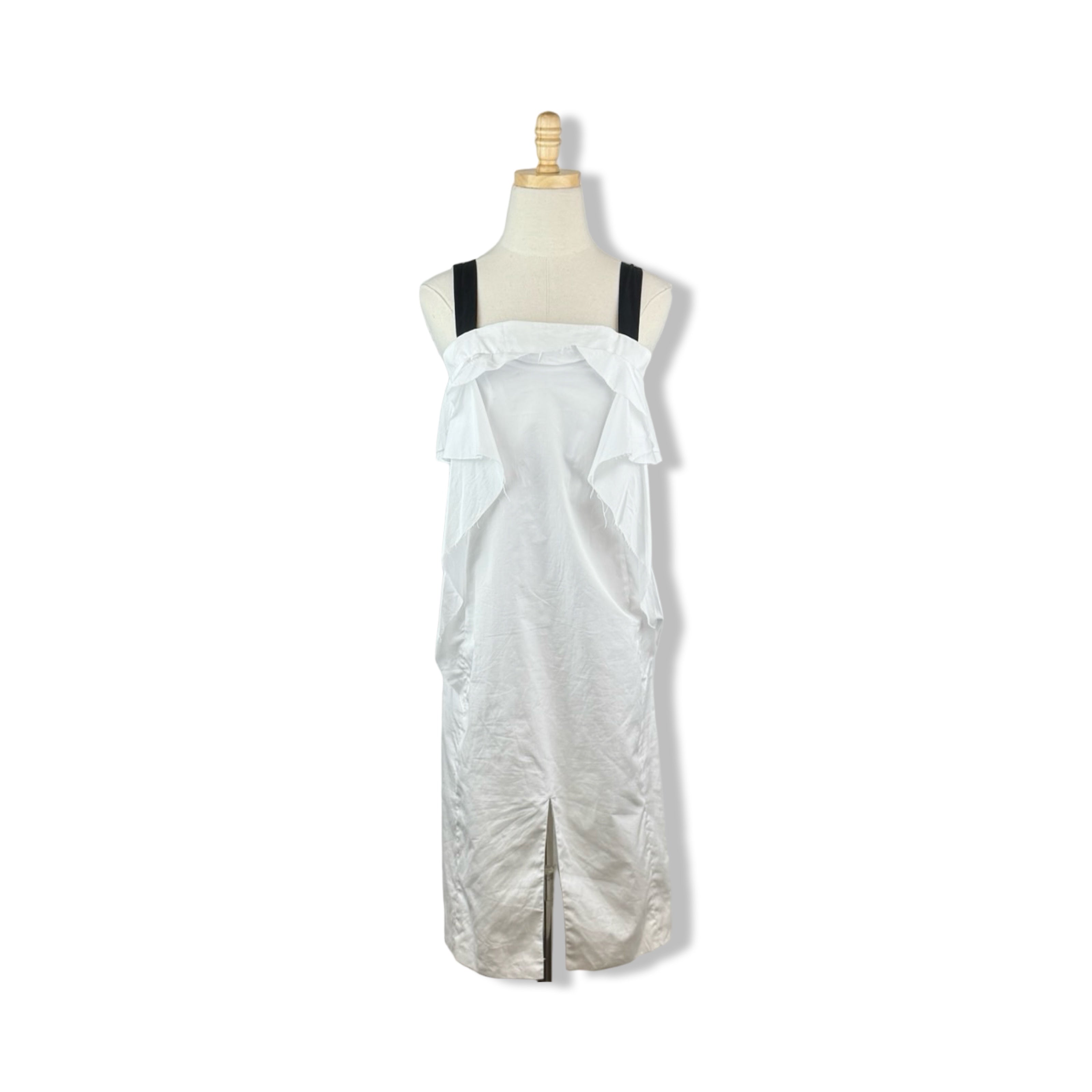 - Cotton sheath dress with bodice ruffles and ribbon straps