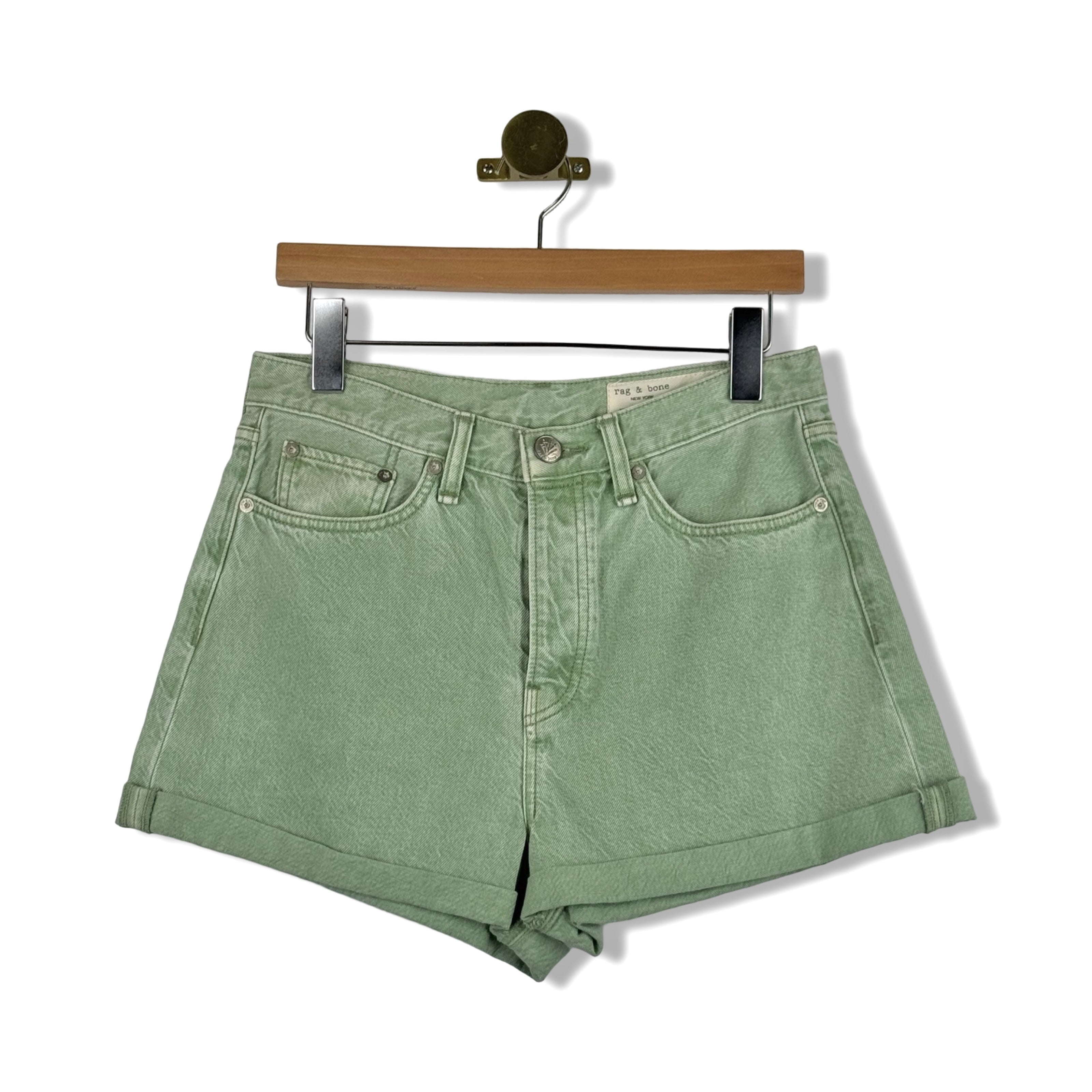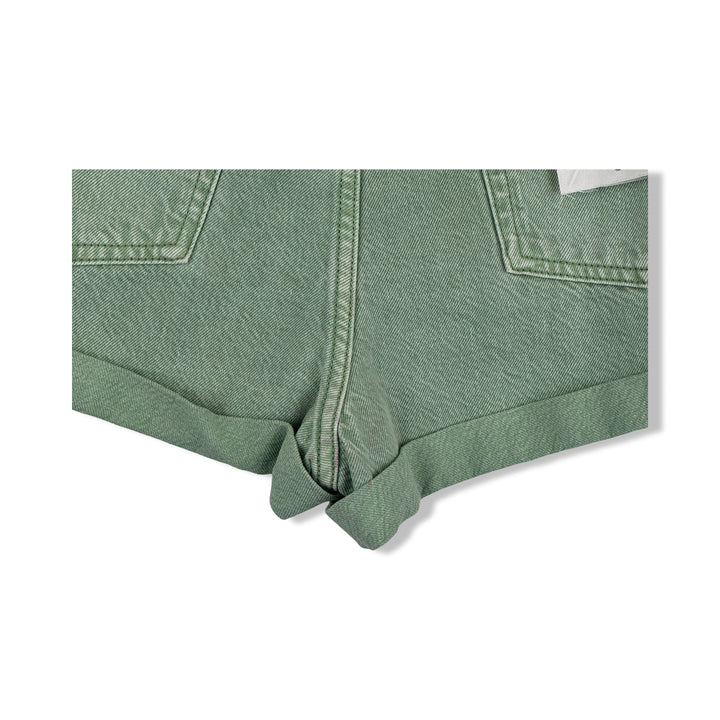 - 5-pocket style shorts with raw-cut cuffed hem and a button fly. Signs of wear (pictured)