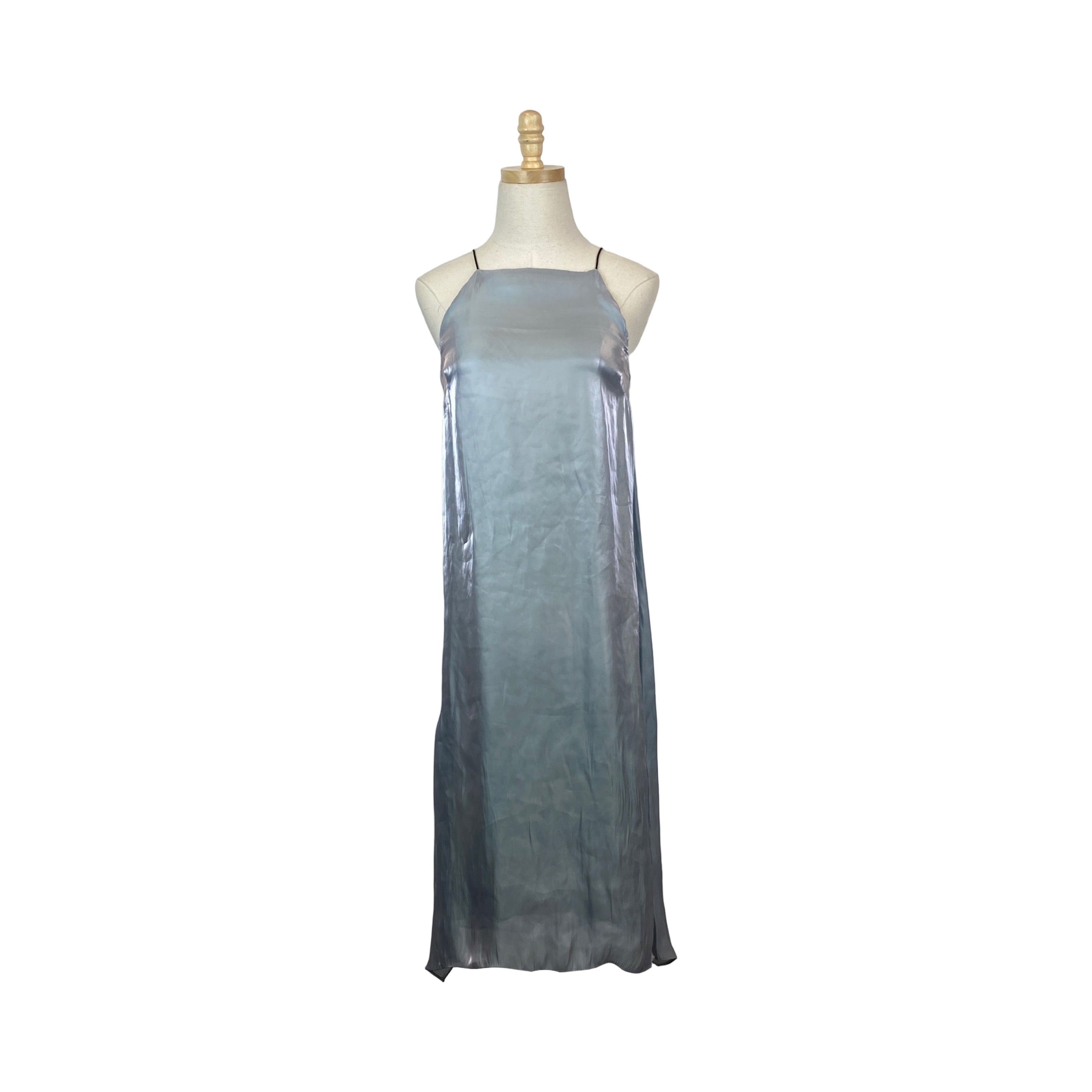 - This silk slip dress features a playful tulip drape and flirty spaghetti straps. Labeled as 00, please check measurements