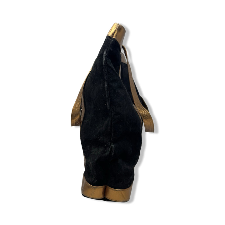 - Shoulder bag with metallic straps, leopard print ponyhair patterning, tassel detail, and zip closure. Signs of wear (pictured)
