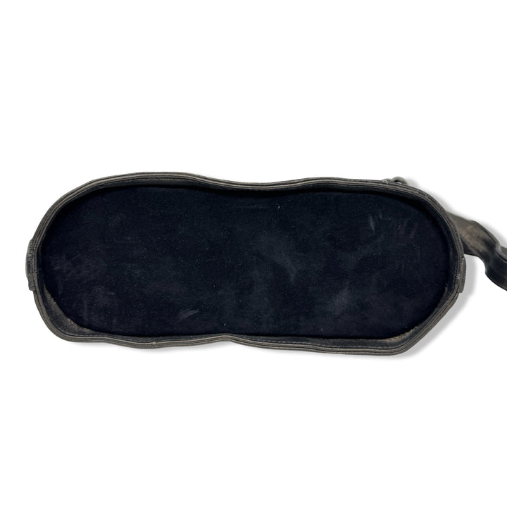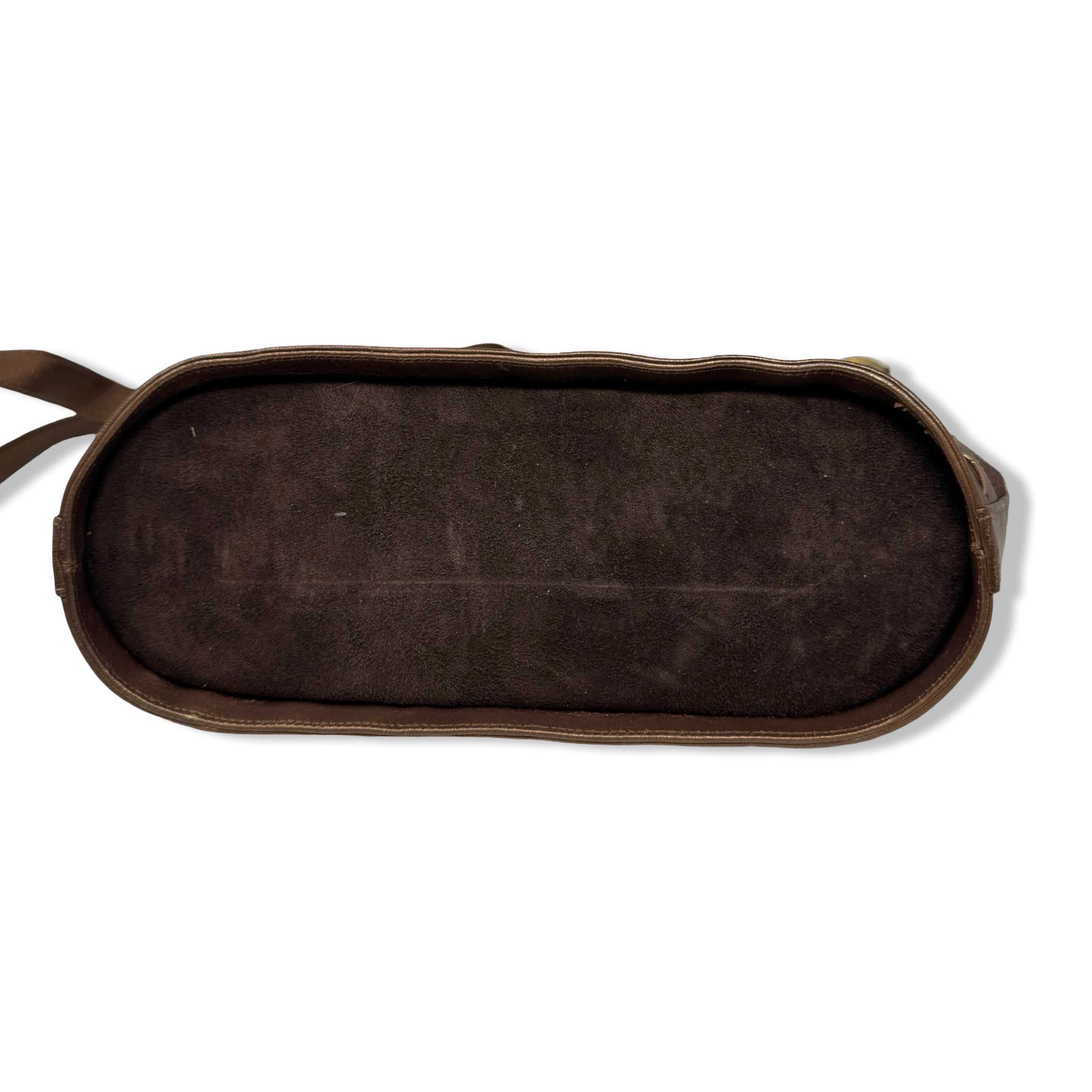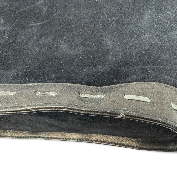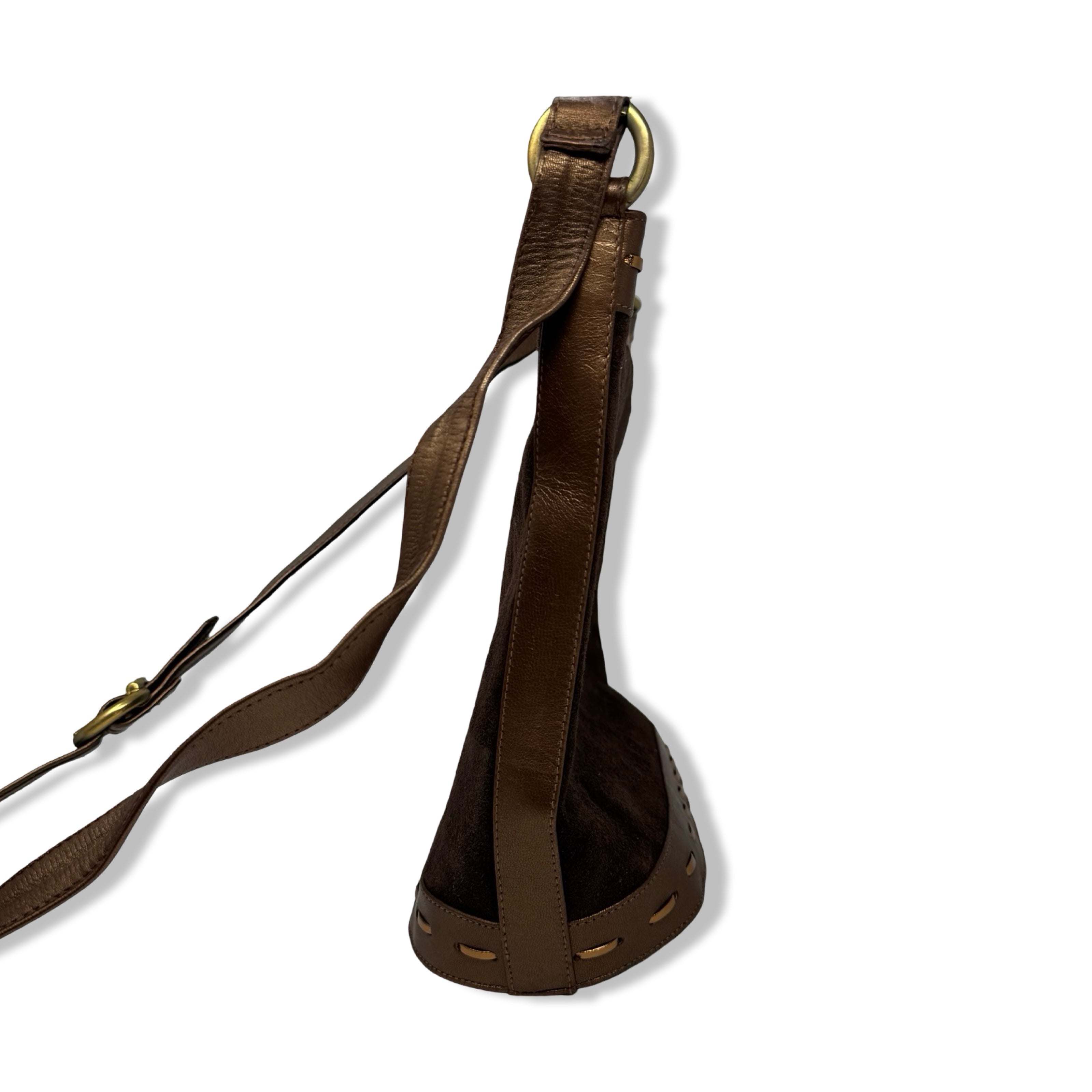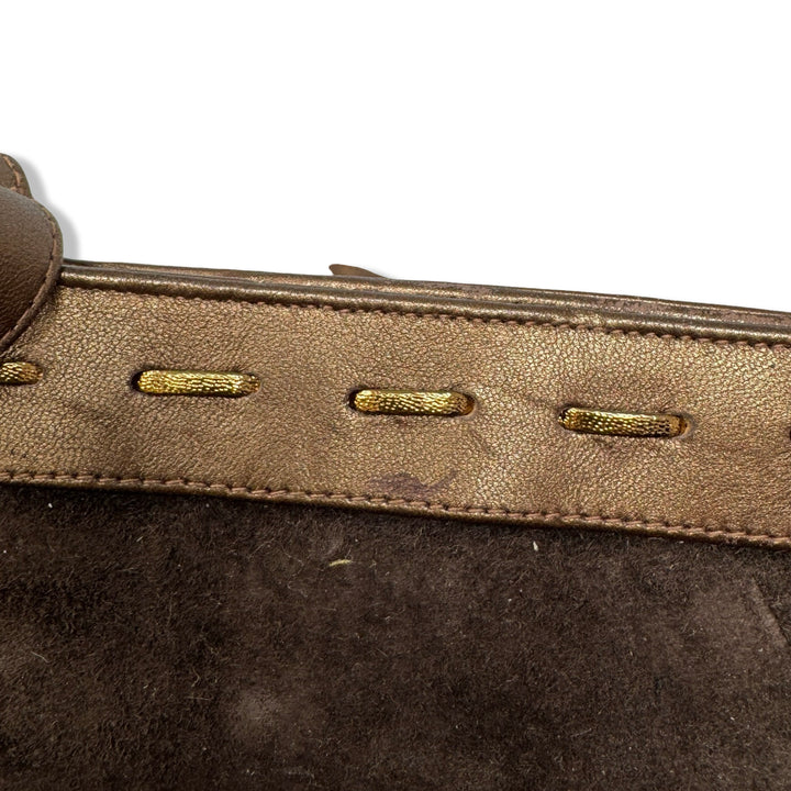 - Suede crossbody bag with metallic straps and stitching and zip closure. Signs of wear (pictured)