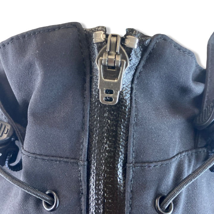 - Hooded zip jacket with dual front pockets. Zipper missing pull (pictured)