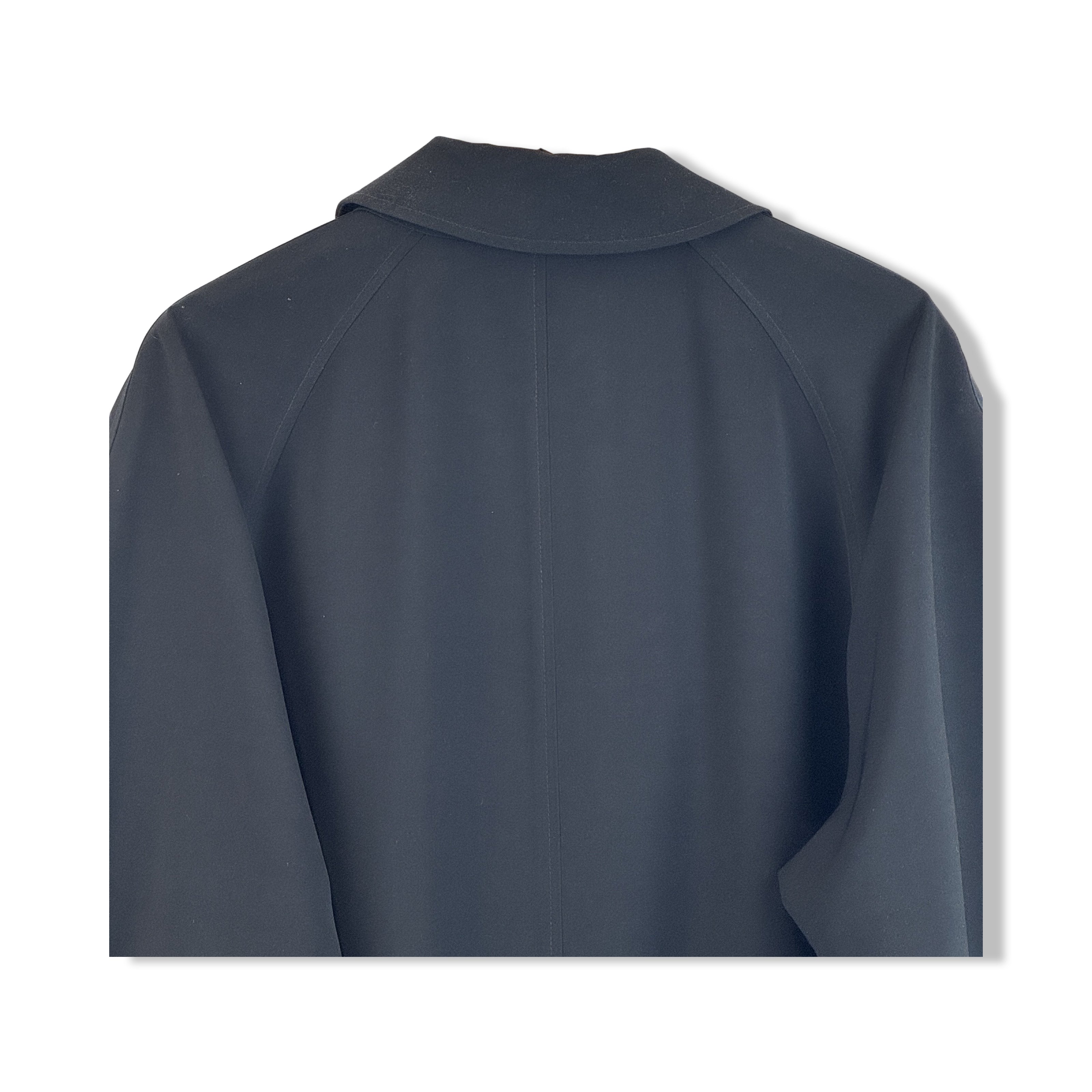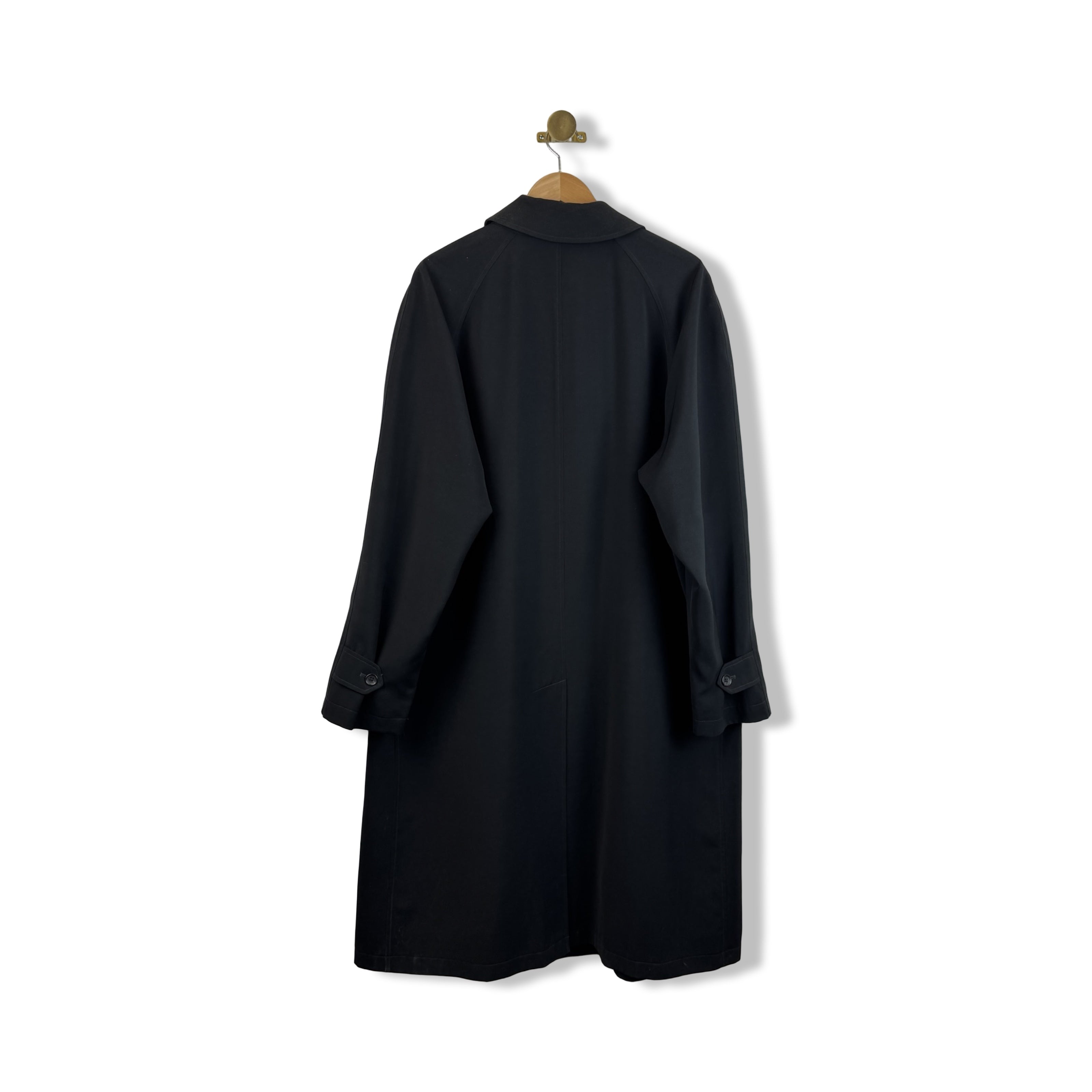 - Button up trench coat with front pockets, cuff tabs and back vent. Made in Thailand. Labeled size 46. Please check measurements for reference.