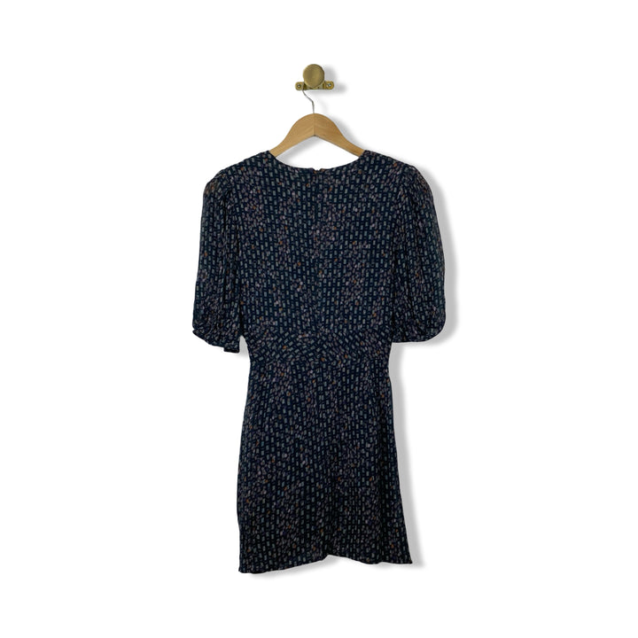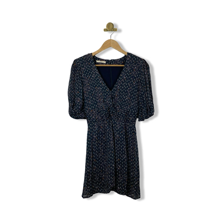 - Short dress tied at the front in printed viscose chiffon seersucker. Some signs of wear