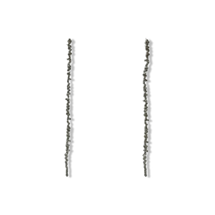 - Thin drop earrings filled with rhinestones. Missing backing