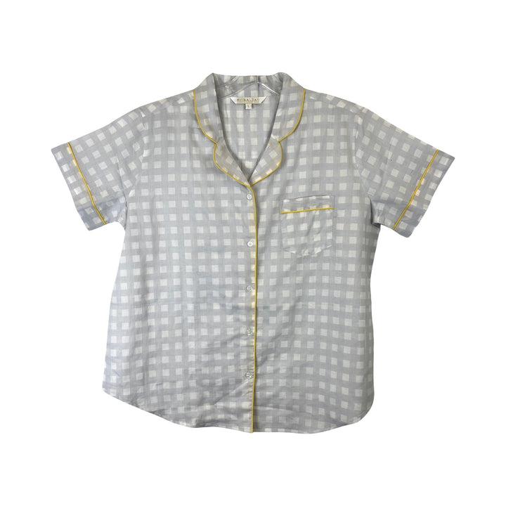 - Relaxed fit gingham print short sleeved pajama top with matching shorts