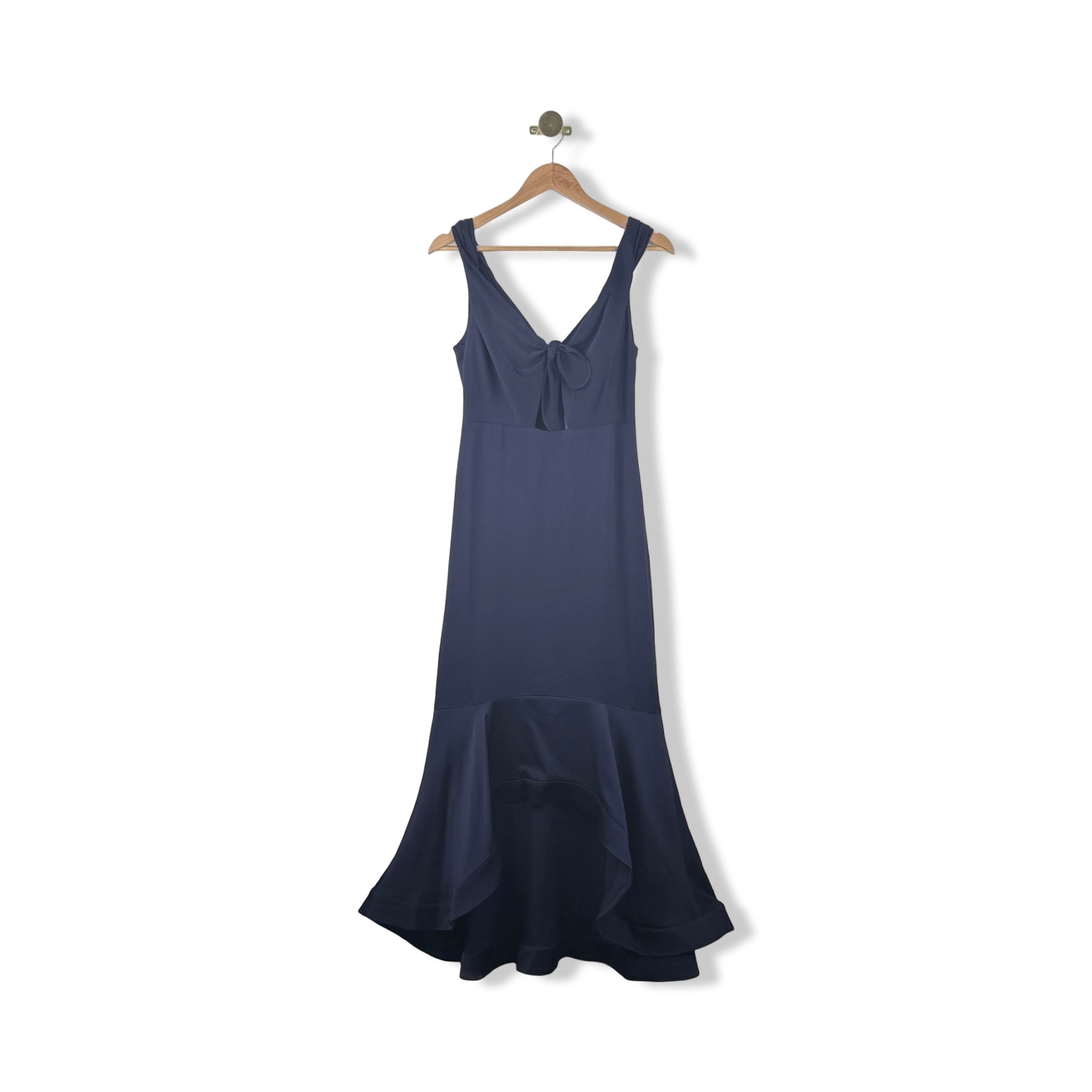 - Maxi dress with braided strap, keyhole tie front, and back zip closure
