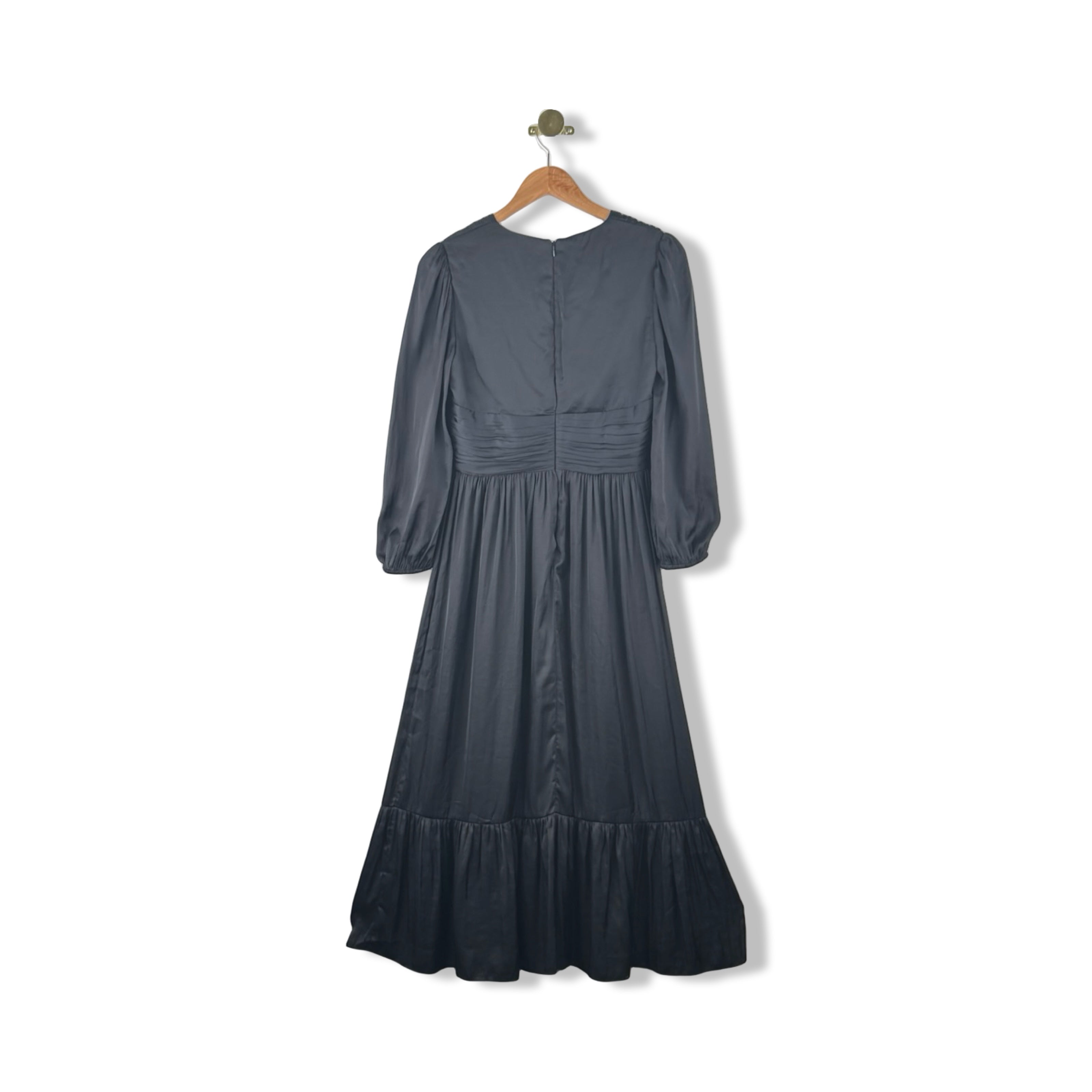 - Long sleeve maxi dress with button down chest. Size label missing, looks like a Small