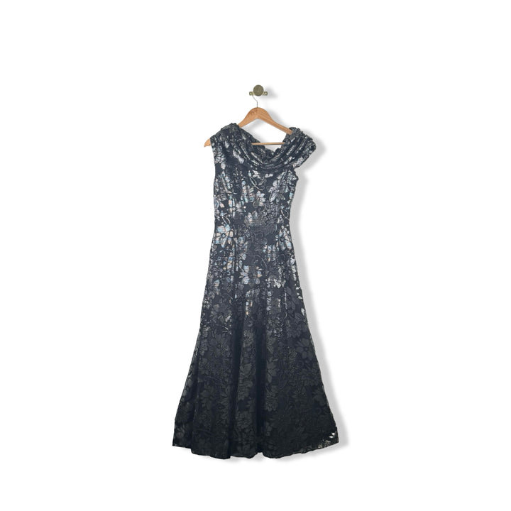 - Metallic floral gown and side zip closure. Size label missing, looks like a Small