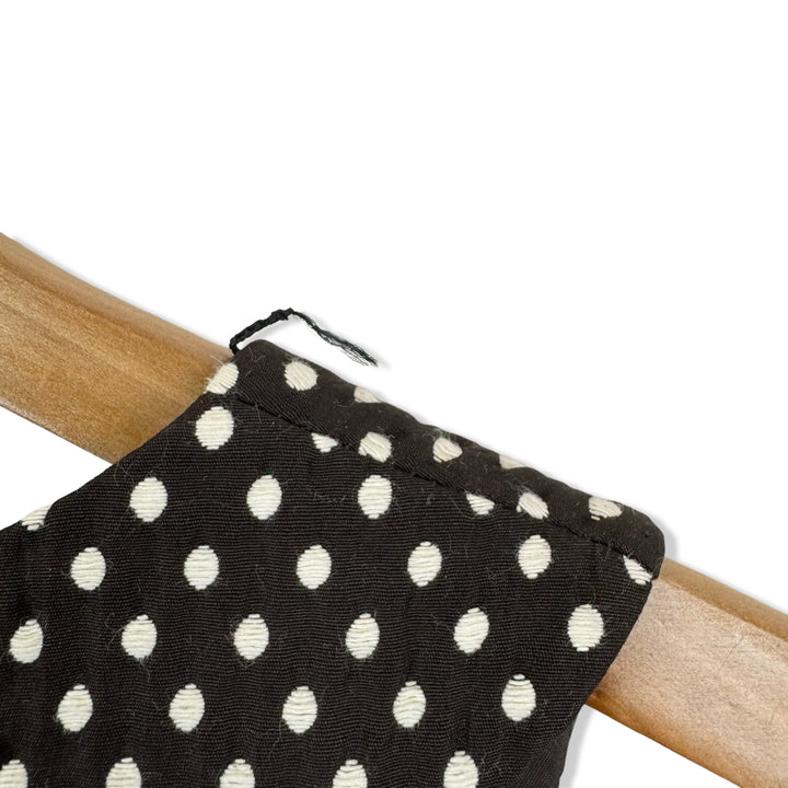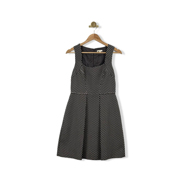 - Experience the timeless elegance of our polka dot dress, featuring a pleated design and a back zip closure. Loose thread (pictured)