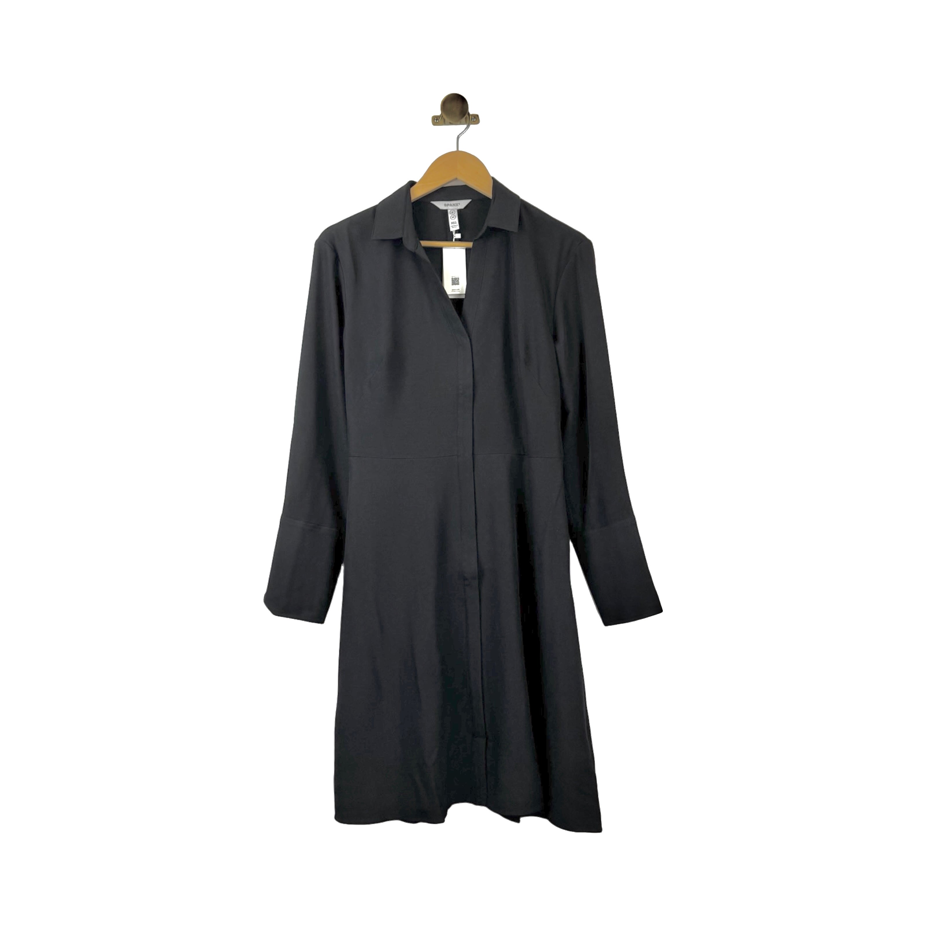 - This effortlessly polished shirt dress is made from our luxuriously light (and machine washable) crepe fabric. Featuring a sleek french seam, flattering neckline, and extended cuff detailing, this pullover collared mini dress is perfect for season-to-season and day-to-night styling.