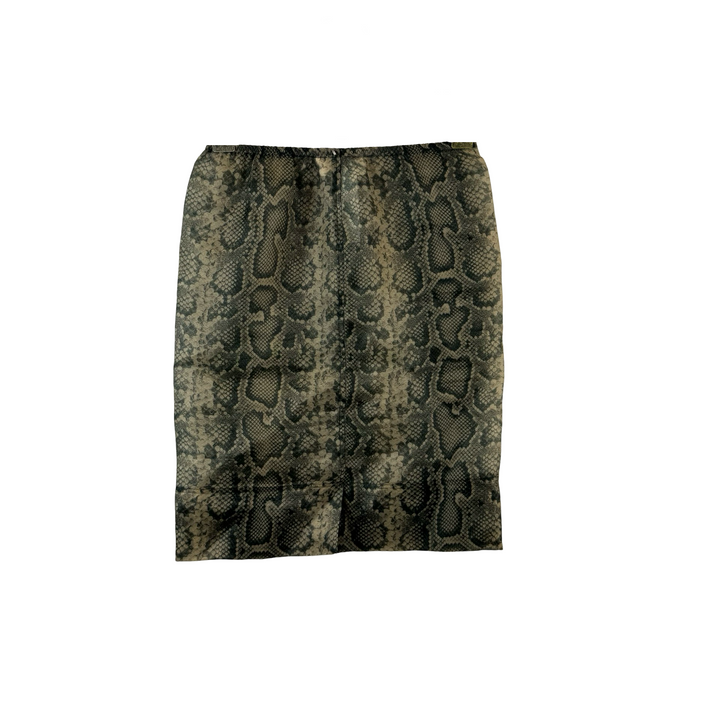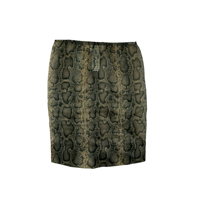 - Snake print midi skirt. Features a small jewel on the back of the waistband. Please note this piece is transparent and should be worn with a skirt liner.