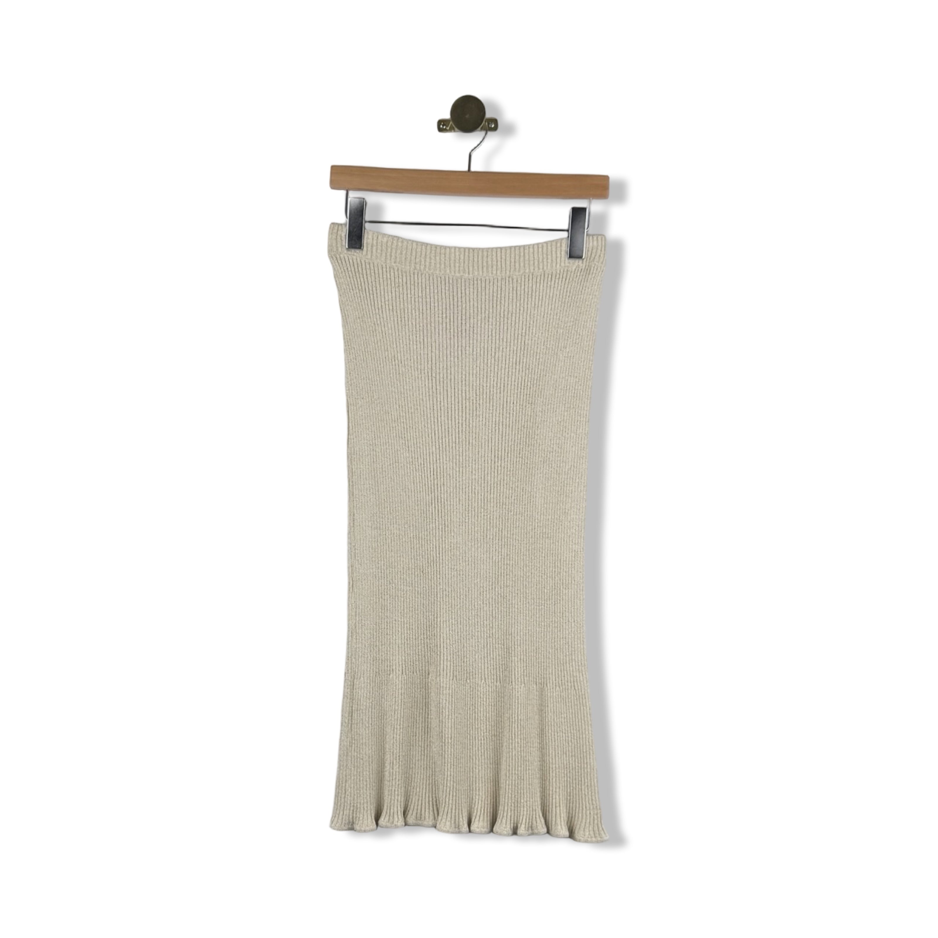 - Elastic waist knit midi skirt