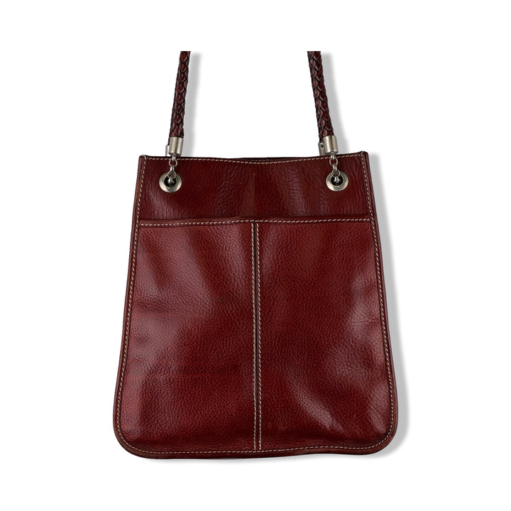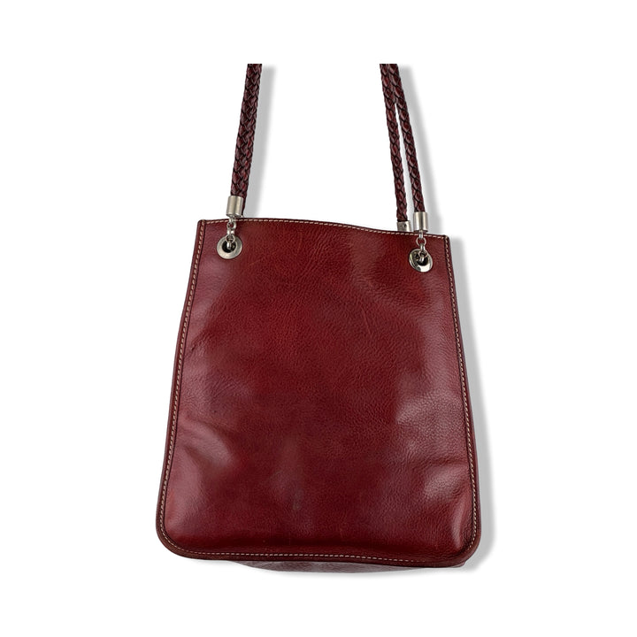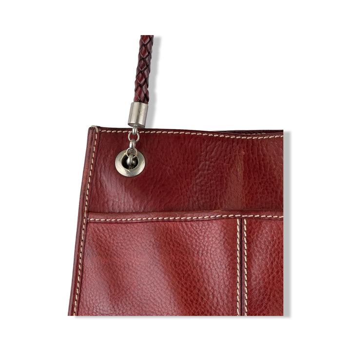 - Textured leather handbag with contrast stitching, braided handle straps and silver hardware. Signs of wear throughout (pictured)