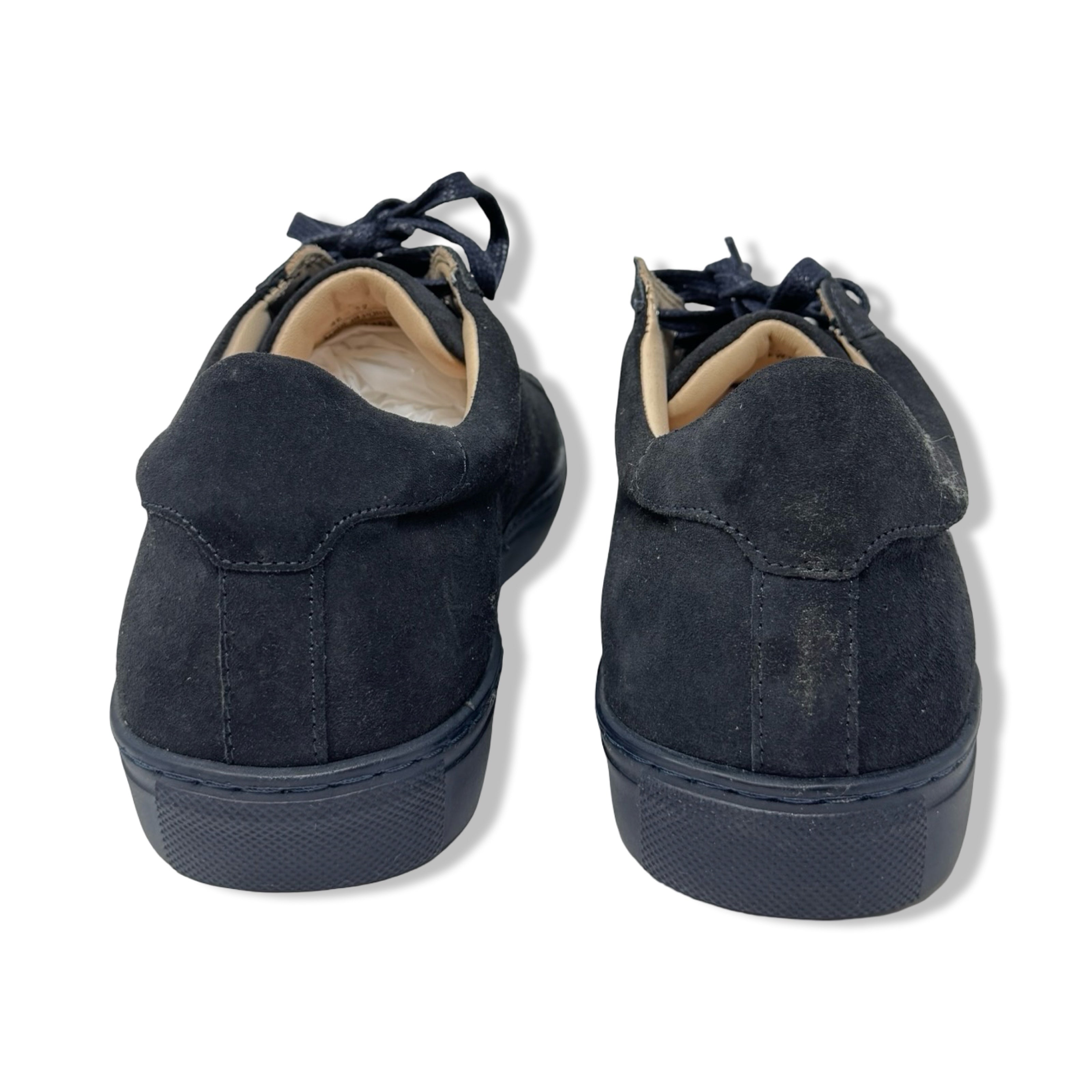 - Lace up sneakers with suede panels. Some signs of wear.