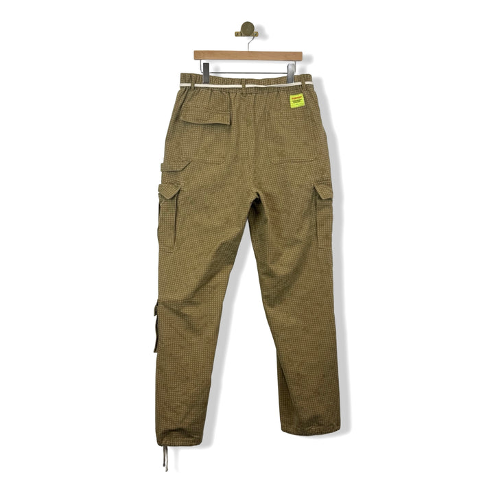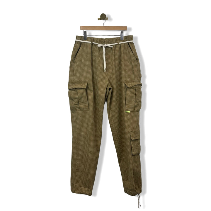 - These pull-on pants feature an elastic waistband and drawstring for a comfortable fit. With pockets on the front, back, and leg, you'll have ample space for your essentials. Plus, the drawstrings on the cuffs add a stylish touch. Some signs of wear (pictured).