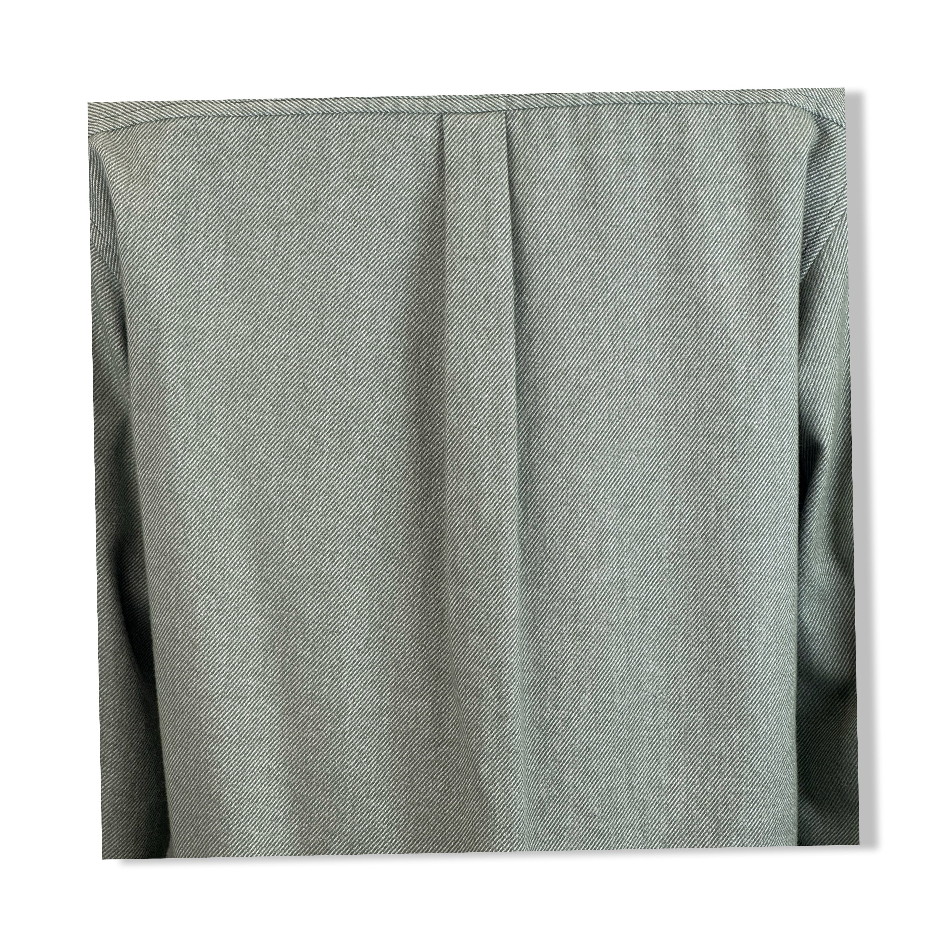 - Button up long sleeve shirt with front chest pockets and curved hem.